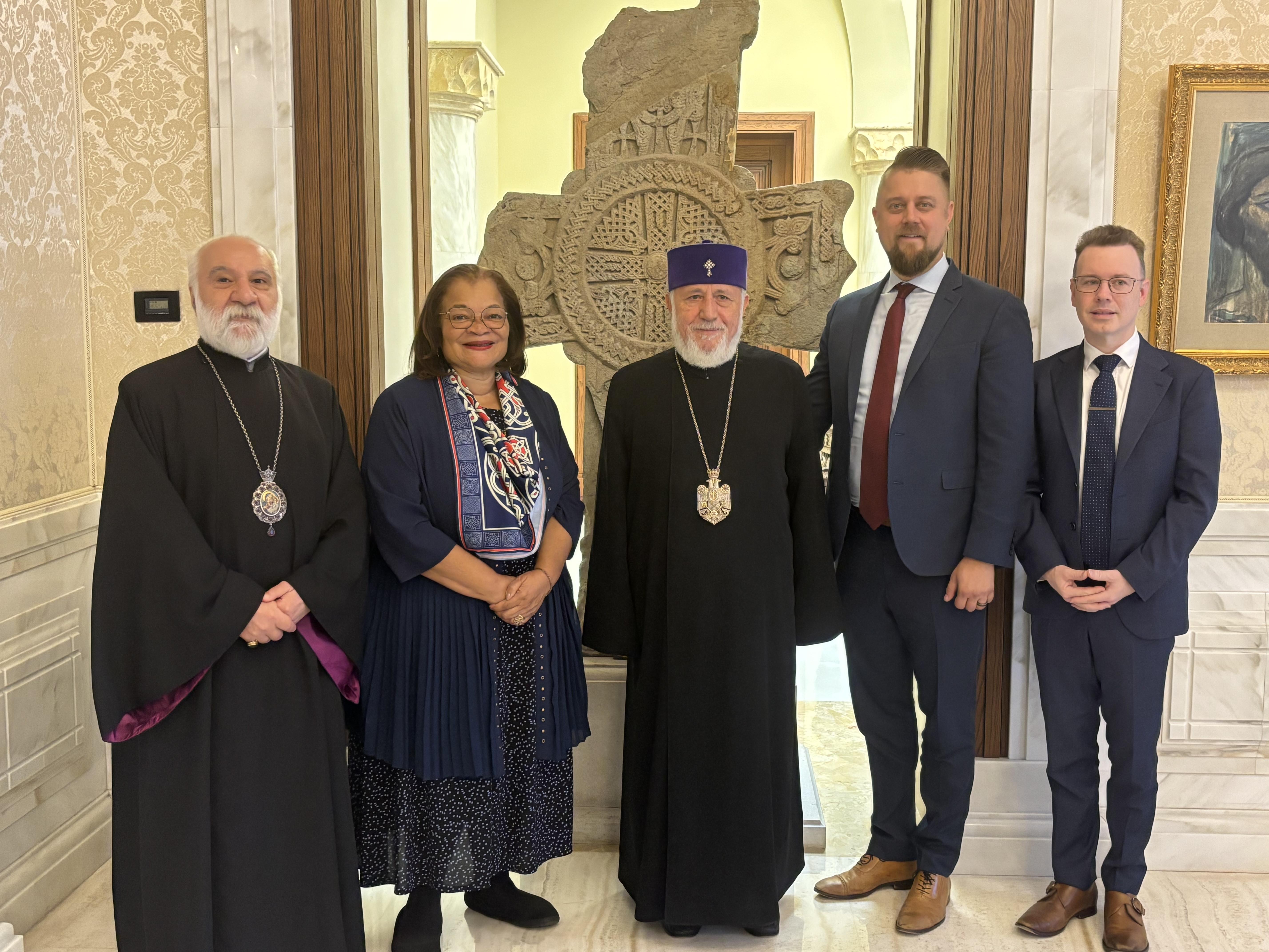 Armenian Apostolic Church Catholicos Karekin II today, in Etchmaidzin, hosted a Save Armenia – A Judeo-Christian Alliance delegation and thanked the organization for supporting Armenia and the Armenian people and for their efforts to make the voice of the Armenian people heard on international platforms.