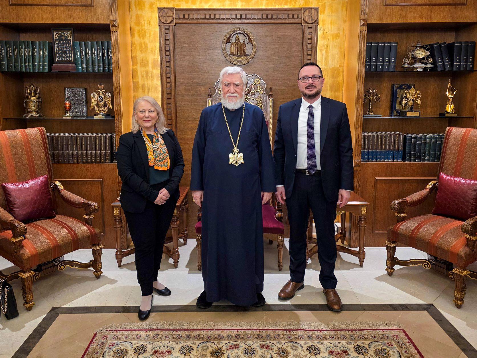 On Thursday, February 5, 2026, Catholicos Aram I welcomed Mr. Constantinos Alexandris, the Religion and Diplomacy Advisor at the European External Action Service (EEAS), at the Catholicosate of the Holy See of Cilicia in Antelias, Lebanon.