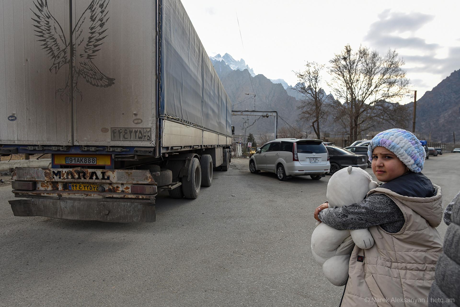 The checkpoint mainly serves truck traffic between Armenia and Iran, with fewer passenger cars due to dangerous roads and security concerns that lead many to relocate within Iran rather than leave the country.