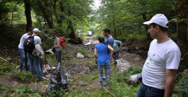 Employees of the Dilijan National Park SNCO got down and dirty as they cleaned up an area adjacent to the Bldan River that had been turned into a convenient dumping ground for picnickers who throng to the verdant spot in the summer