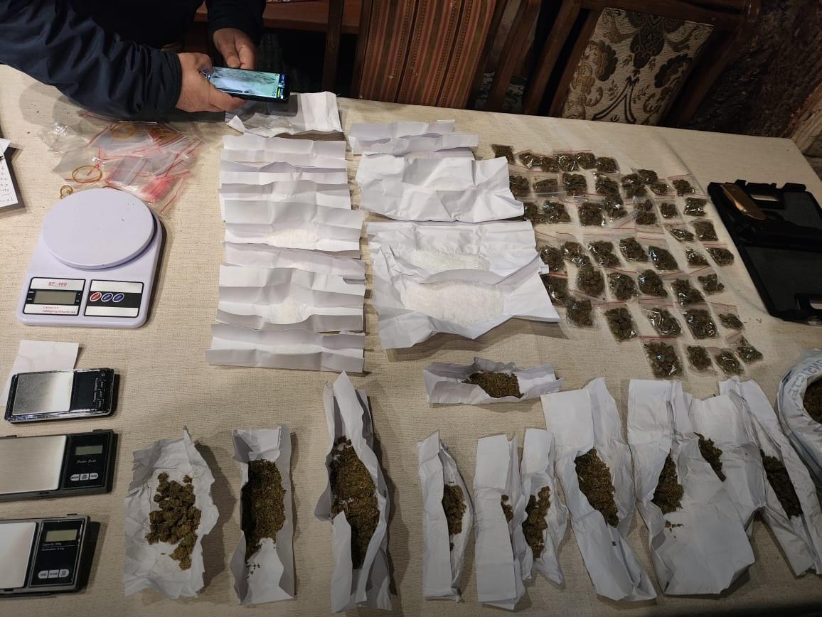 Երևանի 40-ամյա բնակչի աշխատավայրում կատարված խուզարկությամբ հայտնաբերվել է մեծ քանակի, մասնավորապես՝ ընդհանուր 772գ «Մարիխուանա» տեսակի, 559գ «Հաշիշ» տեսակի և 274գ «Մեթամֆետամին» տեսակի թմրամիջոցների նմանվող զանգվածներ՝ փաթեթավորված վիճակում, ինչպես նաև բազմաթիվ զիպ փականներ, կշեռքներ։ Հայտնաբերված զանգվածների բնույթն ու կոնկրետ քաշերը պարզելու նպատակով նշանակվել է համապատասխան փորձաքննություն։