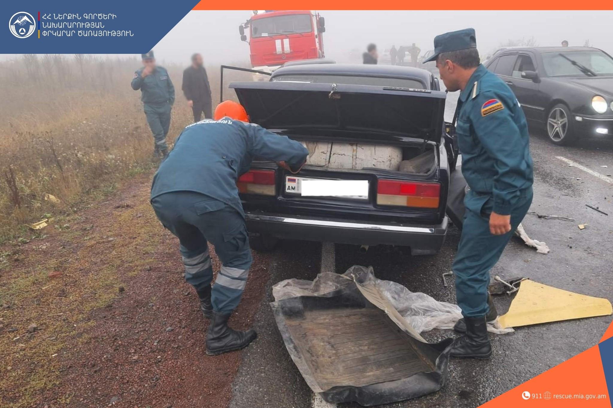 Մինչ փրկարարների կանչի վայր հասնելը՝ վարորդի դին տեղի ուժերով դուրս են բերել մեքենայից, իսկ ուղևորին մոտեցրել շտապօգնության ավտոմեքենային․ վերջինս հոսպիտալացվել է բժշկական կենտրոն։