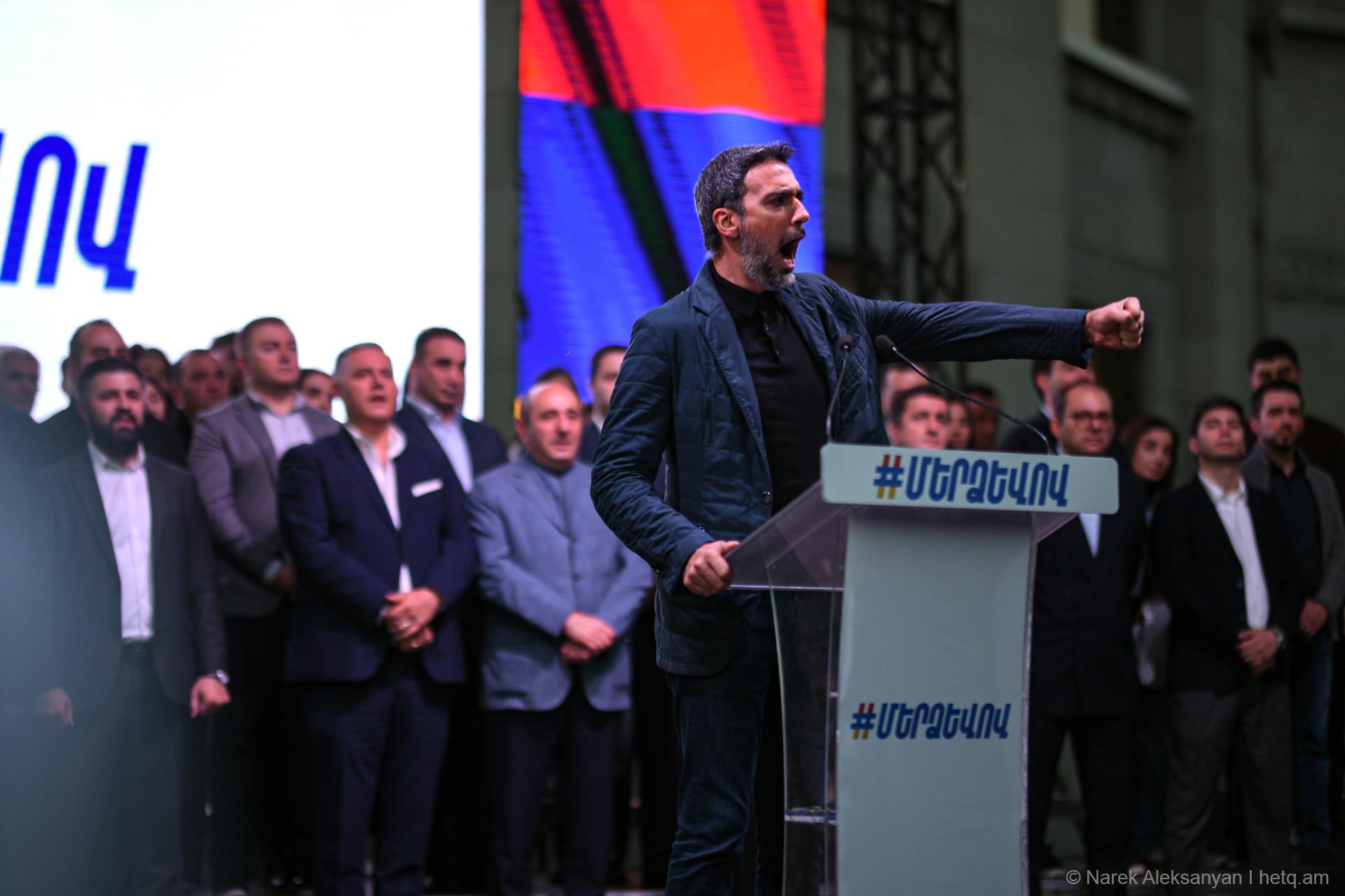 «Մենք բոլորս պետք է պատրաստ լինենք, աշխատենք ու գնանք ընտրությունների»,- հայտարարեց «Մեր ձևով» շարժման համակարգող Նարեկ Կարապետյանը։ Հանրահավաքից հետո տեղի ունեցավ երթ` դեպի ԱԱԾ, որն առաջնորդում էին Սամվել Կարապետյանի ընտանիքի անդամները։ ԱԱԾ-ի մոտ շարժման անդամ, փաստաբան Արամ Վարդևանյանը հայտարարեց, որ «Մեր ձևով» շարժման՝ կուսակցություն դառնալու պահից Սամվել Կարապետյանը պատրաստ է ստանձնել կուսակցության նախագահի պաշտոնը։