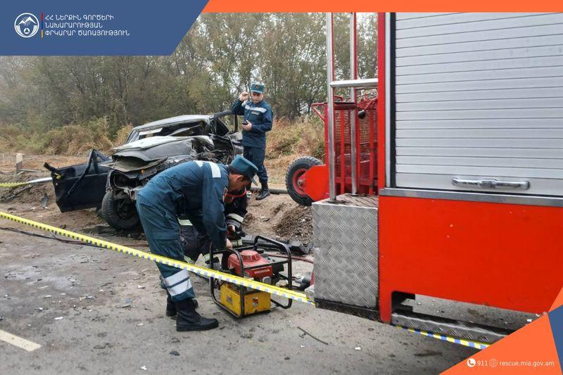 Փրկարարները սահմանազատել են տարածքը, հոսանքազրկել ավտոմեքենաները, փակել գազի բալոնների փականները, կատարել ճանապարհի լվացման աշխատանքներ և «Lada» մակնիշի ավտոմեքենայից դուրս են բերել վարորդի դին և մոտեցրել դի տեղափոխող ավտոմեքենային»,-ասված է հաղորդագրության մեջ։