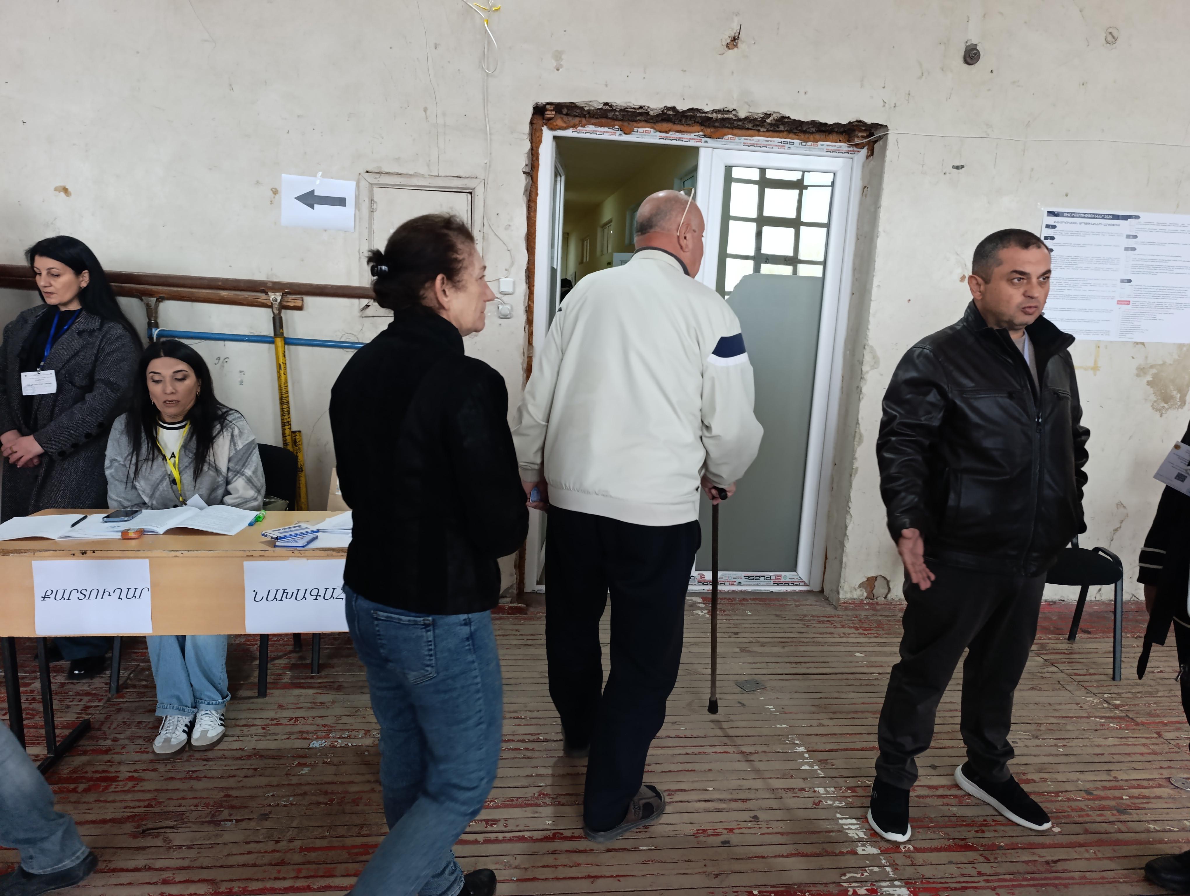Հատկապես տարեց ընտրողները դժվարությամբ են հասնում։ Կանգնում, հանգստանում նոր առաջ են շարժվում։ Որպեսզի ընտրողը չմոլորվի դպրոցում, պատերին փակցված սլաքներով ցույց են տալիս քվեարկության սենյակի տեղը։