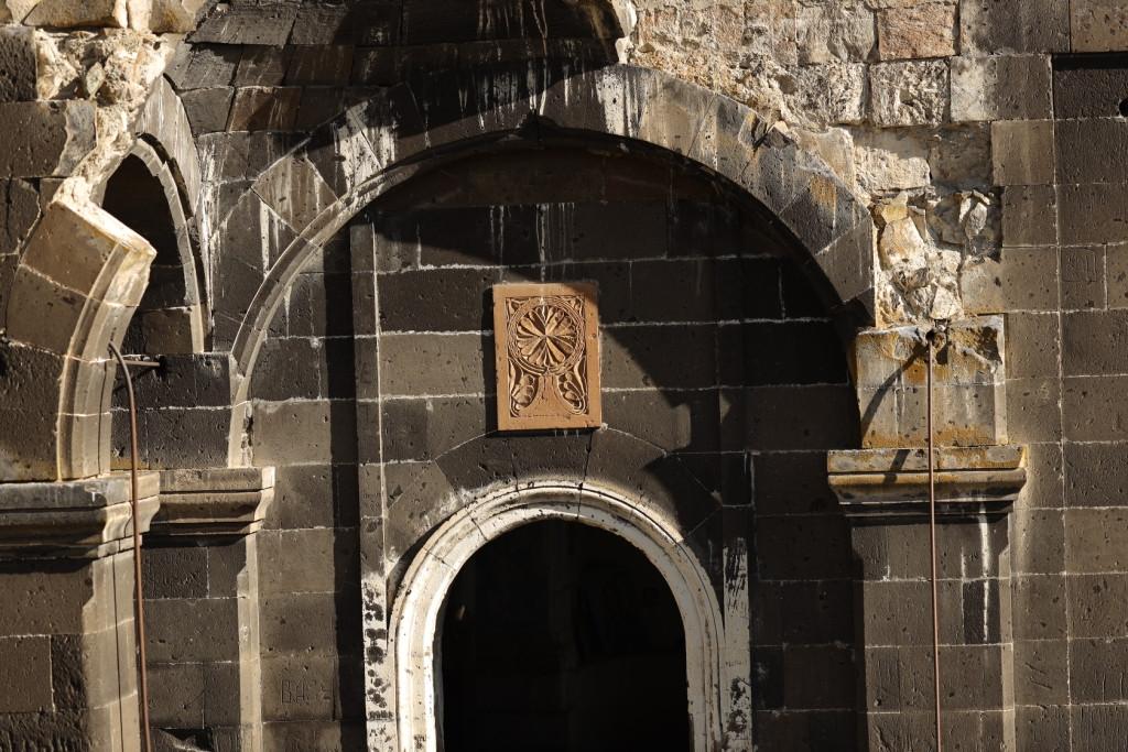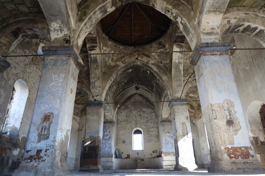 Եկեղեցի մտնելիս վախեցնում ենք ներսում գտնվող աղավնիներին, որ ամղկոտ թևաբախյունով նետվում են տանիքի բաց հատվածները: Խաչաձև հատակագծով կենտրոնագմբեթ շինության անկյունային պատերը խարխլված են: Աշխատում ենք տեղաշարժվել եկեղեցու կենտրոնական հատվածում, որտեղ առավել անվտանգ է, ու չկան կախված քարեր: Կիսափուլ զանգակատան դիմաց աշխատելիս լռությունը հանկարծակի ընդհատվում է նամազի կանչով, ակամայից հայացք եմ ձգում ժամացույցին՝ 12:50 րոպե է, կեսօրի աղոթքի ժամ հարևան Սունգյուդարի գյուղի հավատացյալների համար: «Մի բարերար չեմ գտնում, որ մեր գյուղում զանգի ձայն լսվի»,- սա գյուղի երկարամյա, նախկին համայնքապետ Վահրամ Սաղաթելյանի երազանքն էր, որ տարիներ անց էլ դեռ իրականություն չի դարձել: