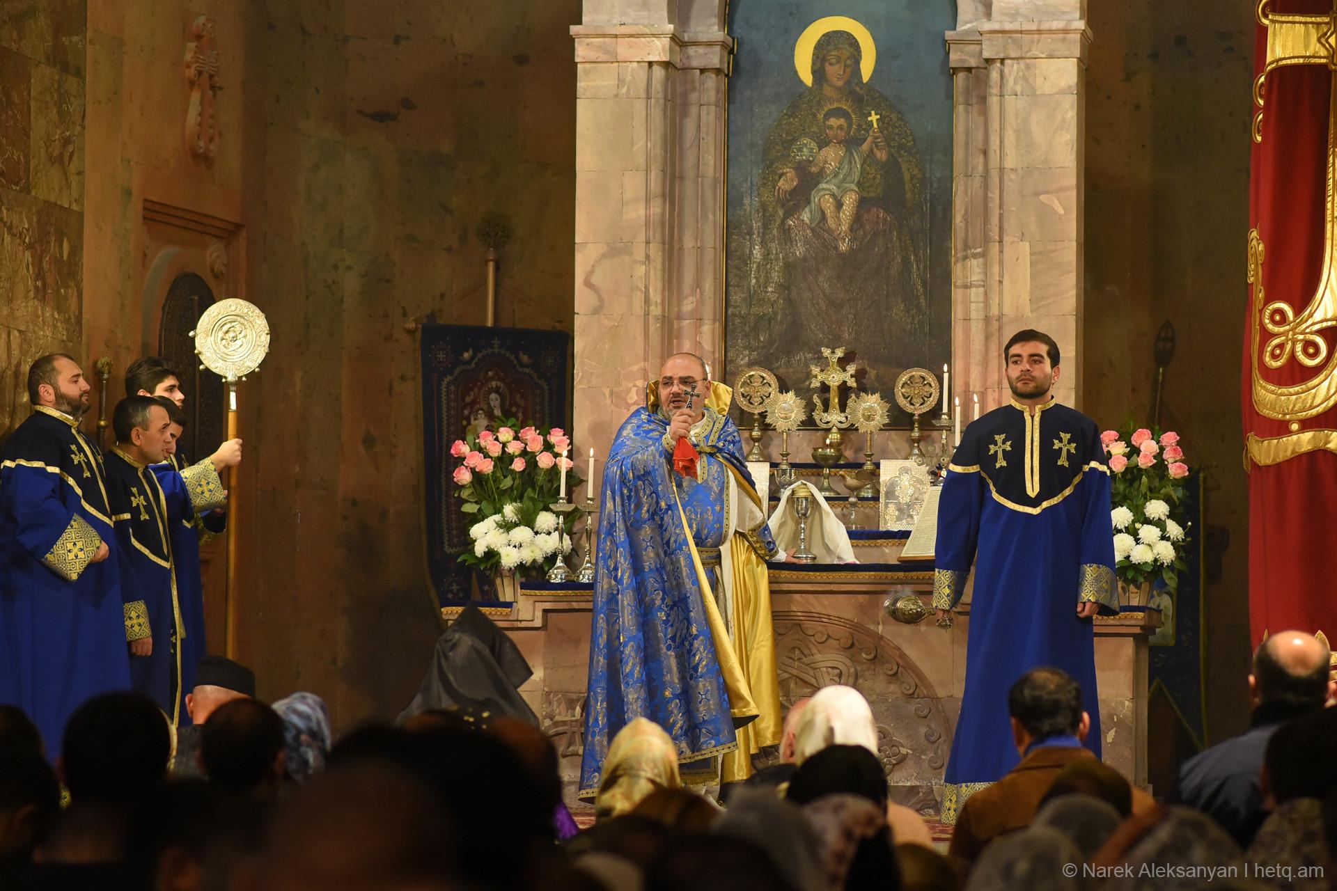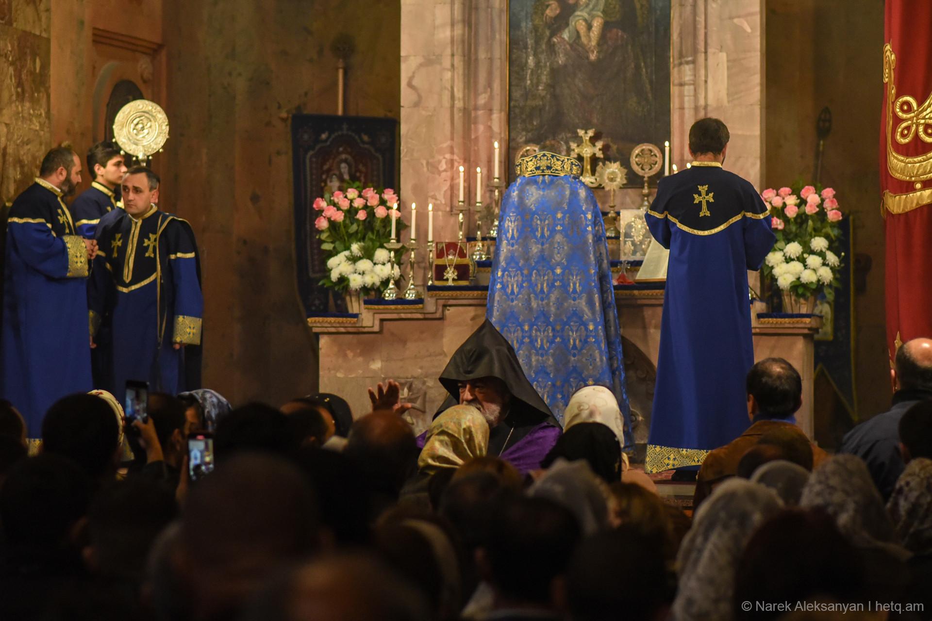 Այսօր Սուրբ Սարգիս եկեղեցում Նավասարդ արքեպիսկոպոս Կճոյանի տնօրինությամբ մատուցվող պատարագի ընթացքում, որին ներկա էր նաև վարչապետ Նիկոլ Փաշինյանը, չհնչեց Ն.Ս.Օ.Տ.Տ. Գարեգին Բ. Ամենայն Հայոց Կաթողիկոսի անունը, ինչպես սովորաբար չի հնչում վերջին շրջանում Փաշինյանի մասնակցությամբ պատարագներին։ Փոխարենը մի քանի քաղաքացիներ հնչեցրին կաթողիկոսի անունը, որից հետո վարչապետի անվտանգության աշխատակիցները նրանց դուրս հանեցին եկեղեցուց։ Վեհափառի անունը եկեղեցում բարձրաձայնած Հովհաննես Իշխանյանին և Հայկ Դորունցին տարան ոստիկանական մեքենայով։ «Հետքի» հետ զրույցում Իշխանյանը հայտնեց, որ իրենց ոստիկանական բաժանմունք չեն տարել, այլ բաց են թողել ճանապարհին. Իշխանյանին` Մայր Հայաստան արձանի մոտ, իսկ Դորունցին՝ Հաղթանակ զբոսայգու մուտքի մոտ։ Ոստիկանությունը նրանց չի ներկայացրել՝ ինչ հիմքով են տանում, միայն նշել են, որ հեռացրել են դեպքի վայրից։