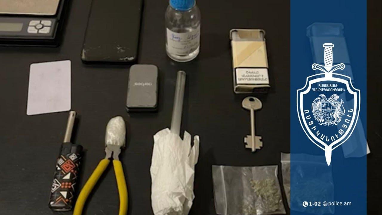 Անձնական խուզարկությամբ 39-ամյա տղամարդու մոտ հայտնաբերվել են դեղնականաչավուն և բյուրեղանման զանգվածներ, հեղուկով տարա և էլեկտրական կշեռք։
