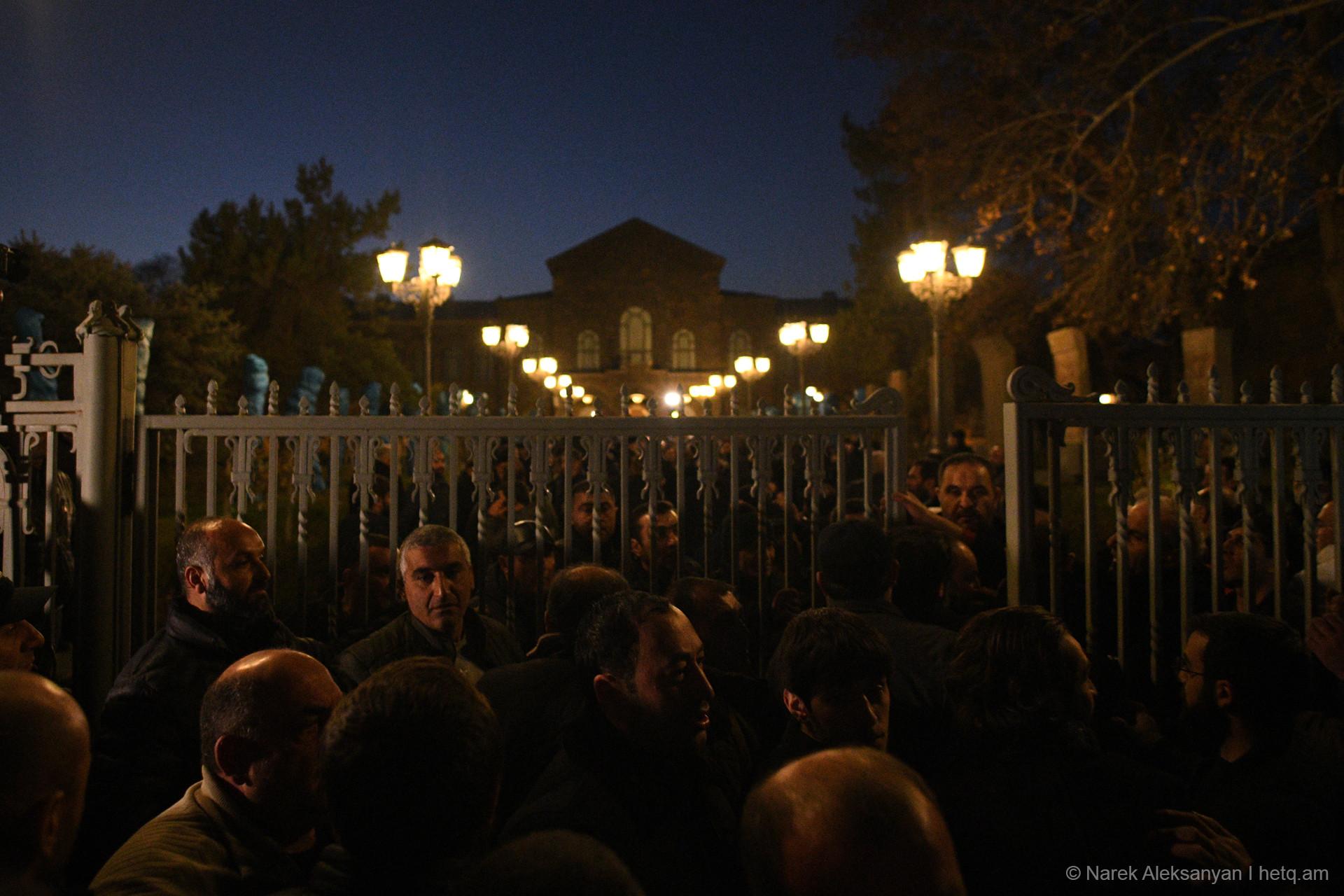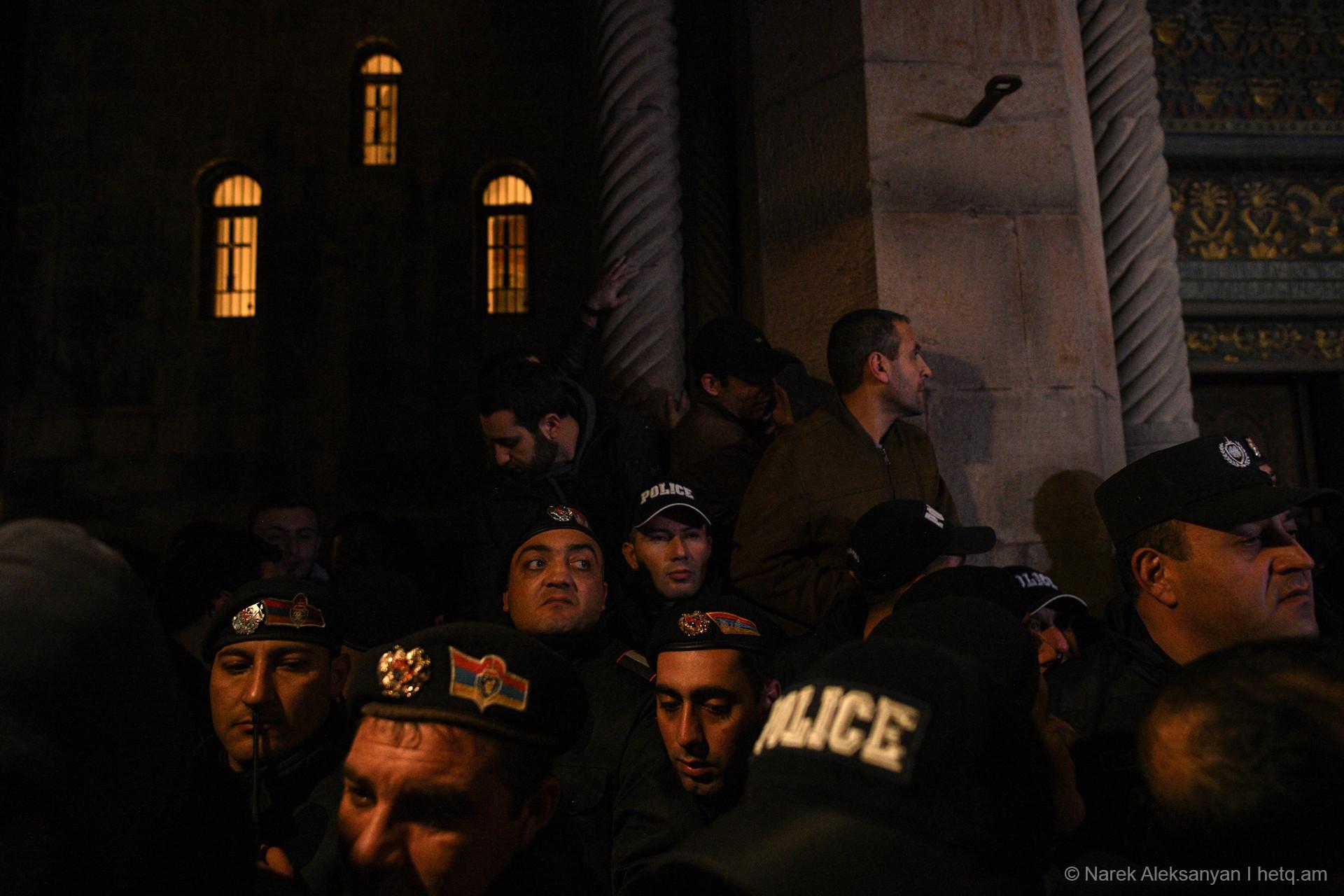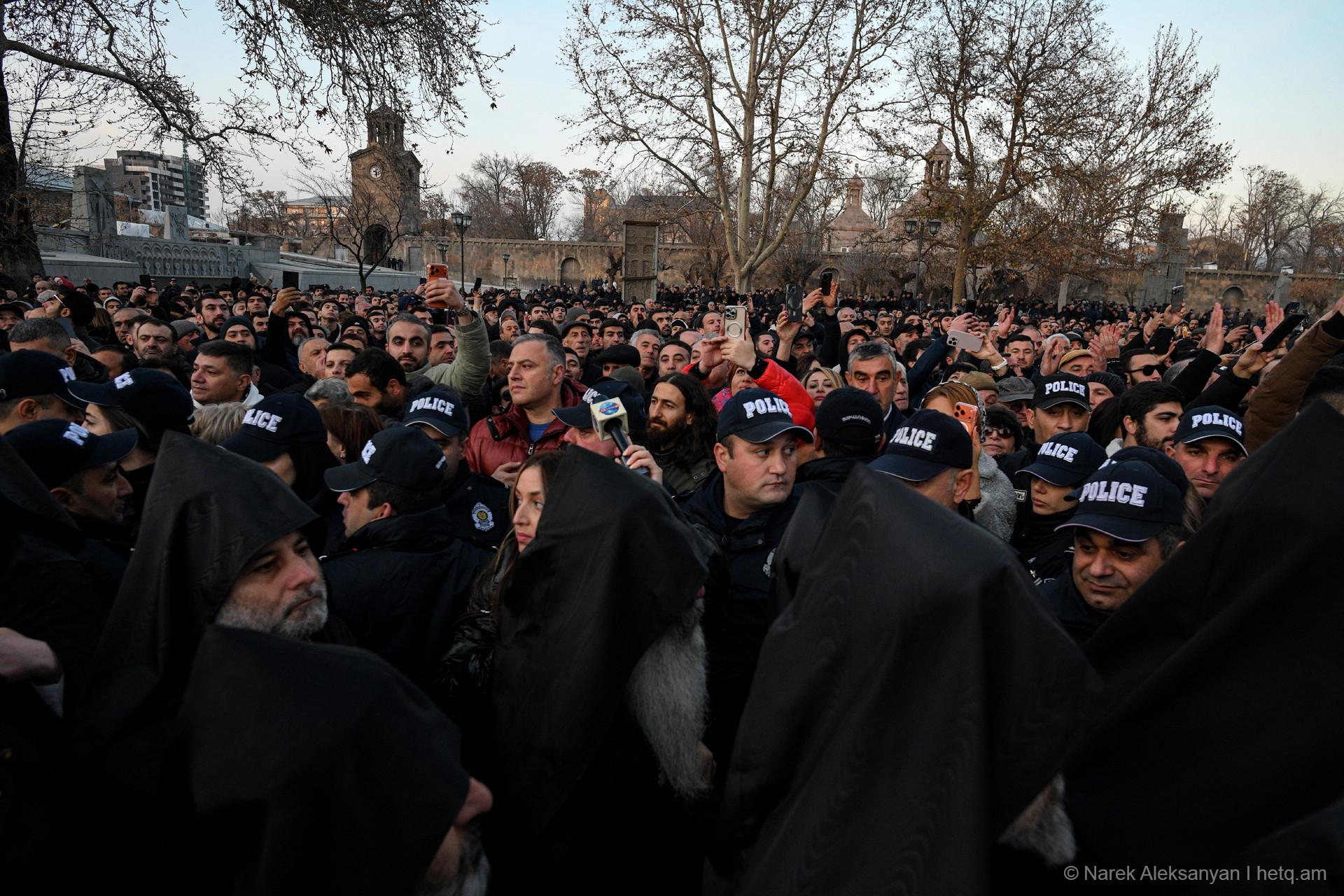 Քիչ անց Մայր Աթոռի բակում հավաքված քաղաքացիները դուրս եկան եկեղեցու տարածքից։ Ավելի վաղ Մայր Աթոռից հեռացել էին եպիսկոպոսները, որոնց անունից հայտարարություն էր տարածվել՝ հավաքվել Մայր Աթոռ Սուրբ Էջմիածնում՝ Կաթողիկոսին հանգստի կոչելու պահանջով։