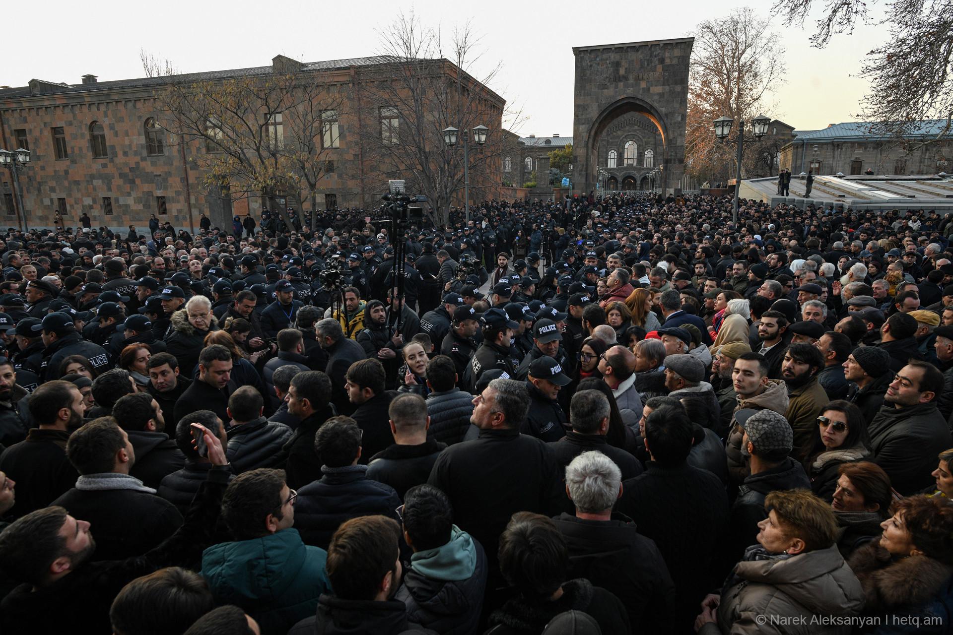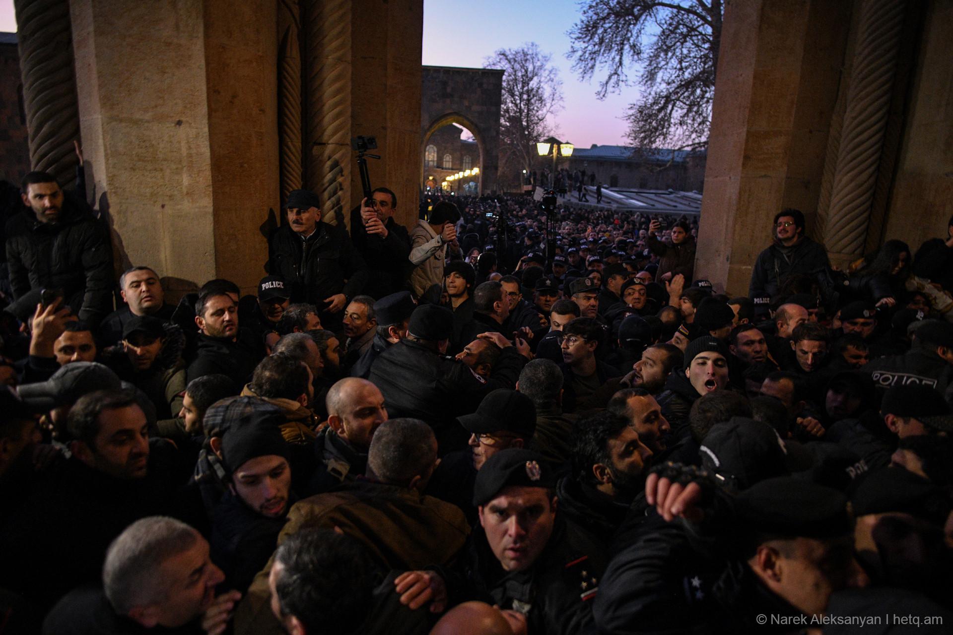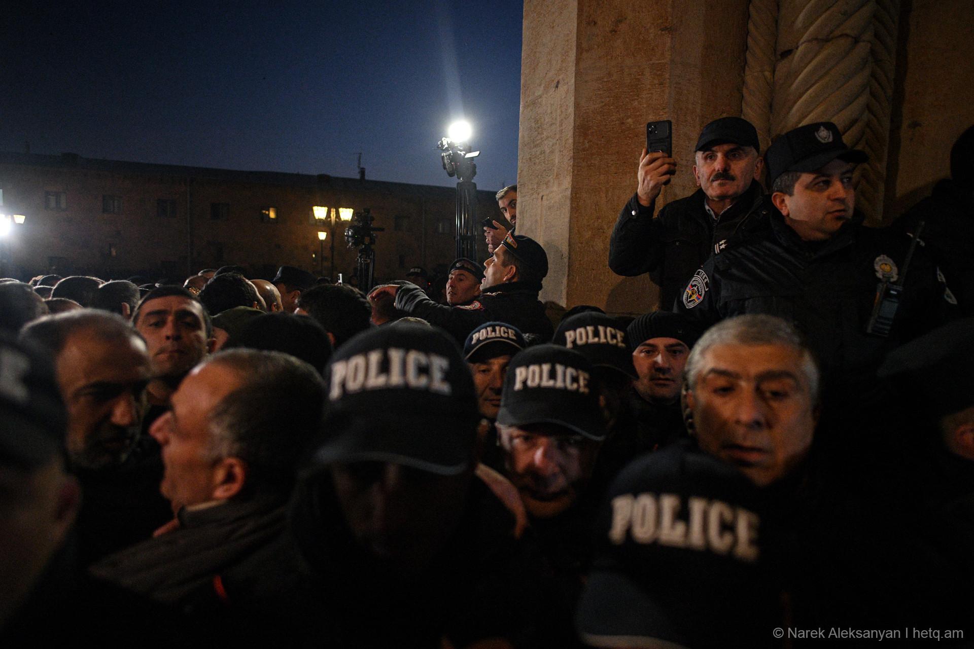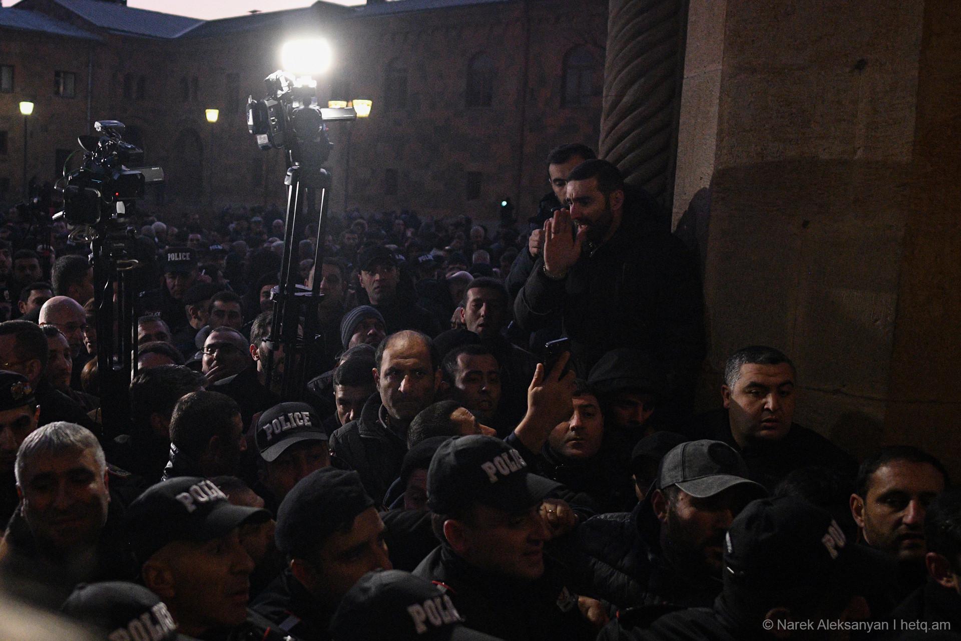 Քիչ անց Մայր Աթոռի բակում հավաքված քաղաքացիները դուրս եկան եկեղեցու տարածքից։ Ավելի վաղ Մայր Աթոռից հեռացել էին եպիսկոպոսները, որոնց անունից հայտարարություն էր տարածվել՝ հավաքվել Մայր Աթոռ Սուրբ Էջմիածնում՝ Կաթողիկոսին հանգստի կոչելու պահանջով։