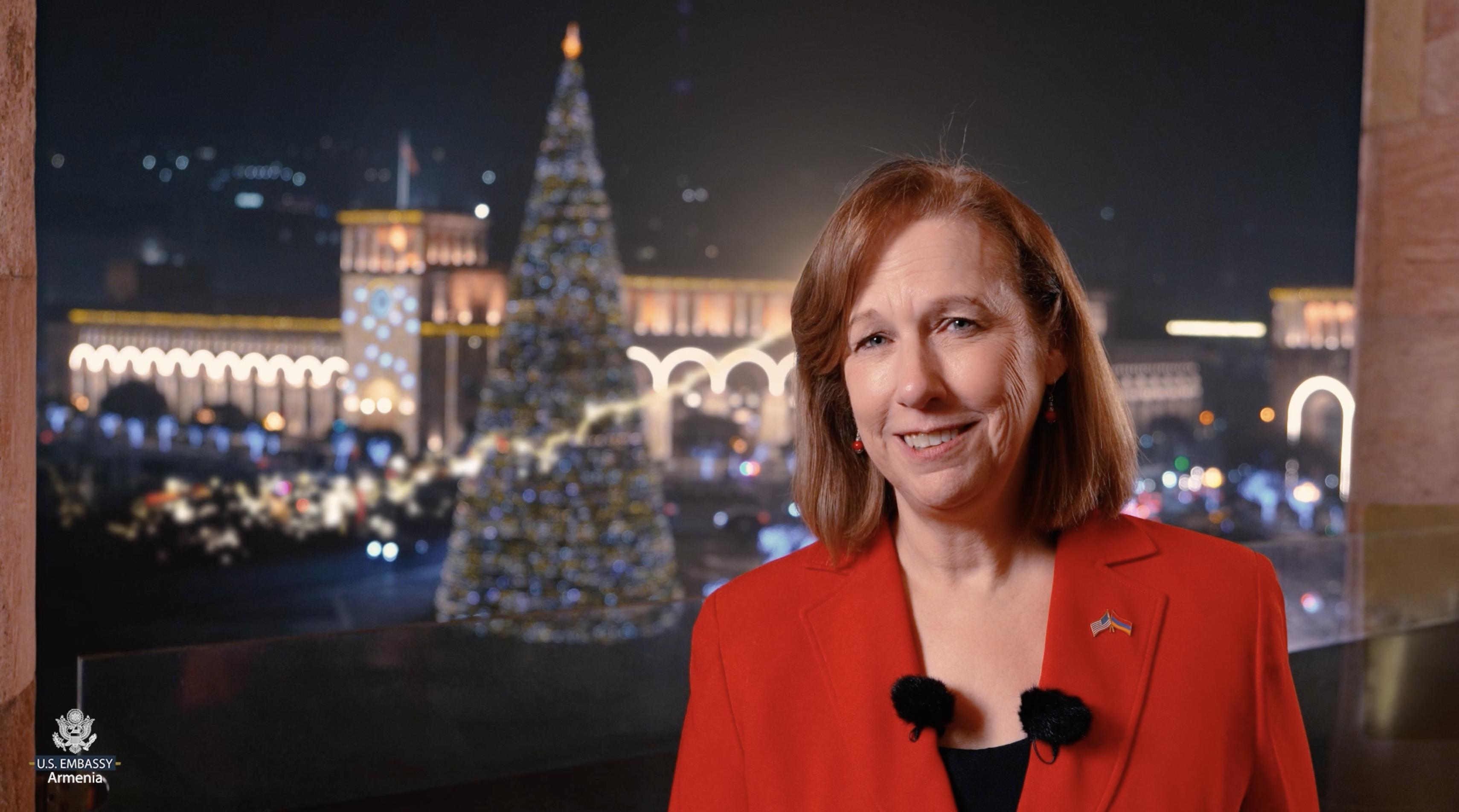 ԱՄՆ դեսպանության բոլոր աշխատակցերի անունից շնորհակալություն եմ հայտնում բարեկամության և գործընկերության համար։ Ձեզ և ձեր ընտանիքներին մաղթում եմ ամենայն բարիք: Թող գալիք տարին լինի խաղաղության և ուրախության տարի։