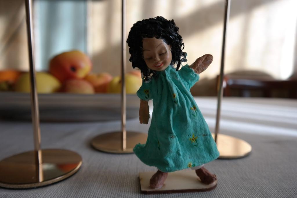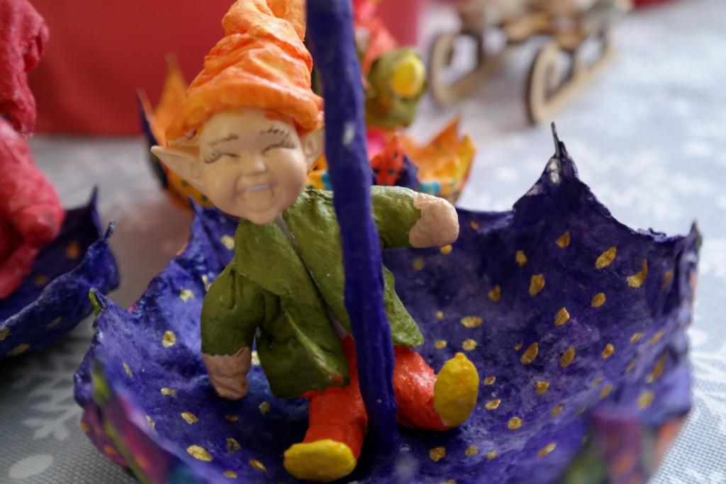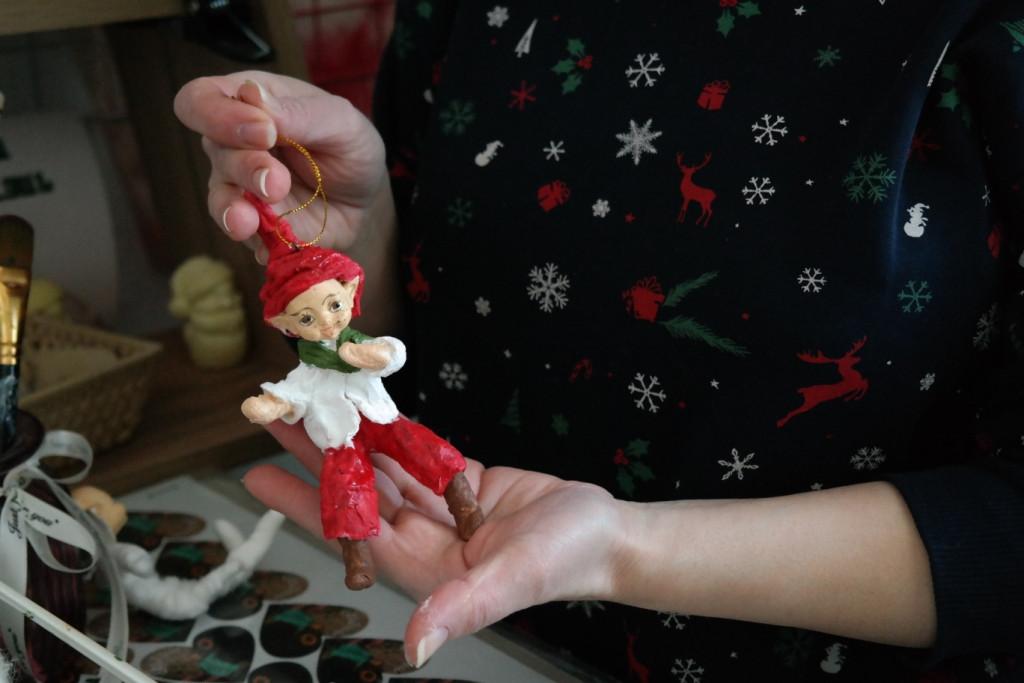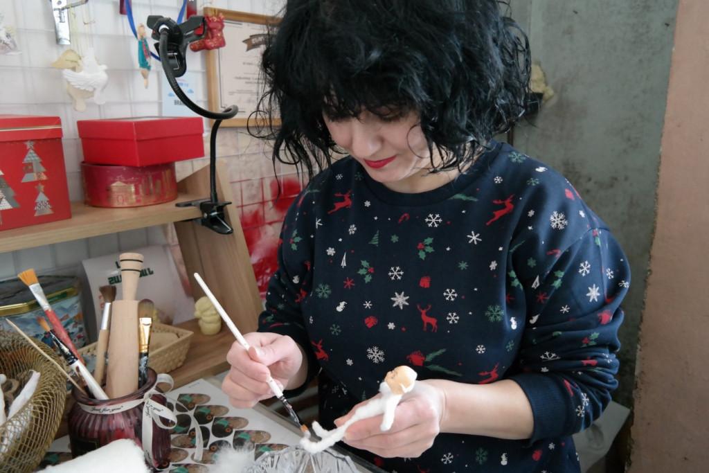 Մատների նուրբ շարժումներից բամբակը ոլորվում, ձգվում ու բարակելով վերածվում է երկու ոտքերի՝ լրացնելով սպիտակ մարմնի պակասող հատվածները: Լենան վրձինը թաթախում է սոսնձի մեջ ու արագ շարժումով ևս մեկ բարակ շերտ է փաթաթում բամբակե մարդուկի ոտքերին՝ ստեղծելով կոշիկի պատրանք: Դեմքի ուրախ-խորամանակ արտահայտությունն ու ցցված ականջներն ինձ տանում են էլֆերի աշխարհ: Գույներ, հագուստ, գլխարկ, իհարկե այդ ամենն արվում է որոշակի ժամանակային ընդմիջումով, և ահա, Լենայի բաց ափի մեջից ինձ աչքով է անում զվարճալի մի մարդուկ: