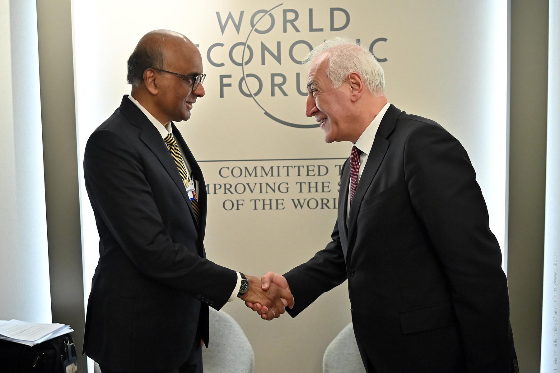 Դավոսի համաշխարհային տնտեսական ֆորումի շրջանակներում Հանրապետության նախագահ Վահագն Խաչատուրյանը հանդիպում է ունեցել Սինգապուրի Հանրապետության նախագահ Թարման Շանմուգարատնամի հետ։ Այս մասին հայտնում են նախագահի աշխատակազմից։