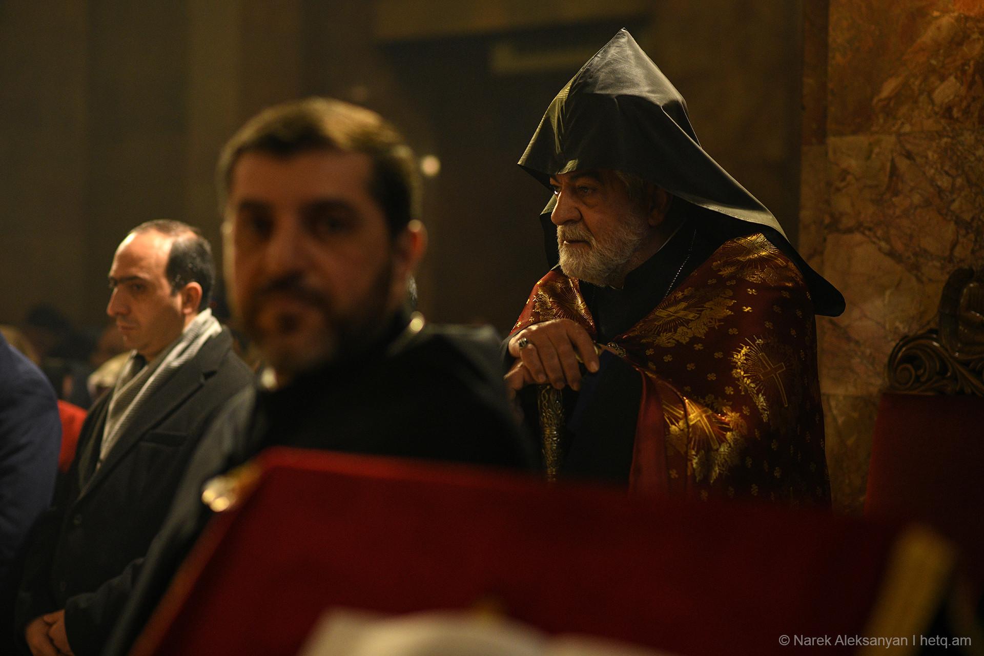 Եկեղեցական կարգի համաձայն պատարագի ընթացքում այսօր հնչեց Գարեգին Բ-ի անունը, չնայած, որ Վեհափառի անունը այս նույն եկեղեցում հնչեցնելու համար քաղաքացիները բռնի ուժով եկեղեցուց հեռացվել էին, երբ պատարագին մասնակցում էր վարչապետ Փաշինյանը։ Այդ օրը Կաթողիկոսի անունը զեղչվել էր։