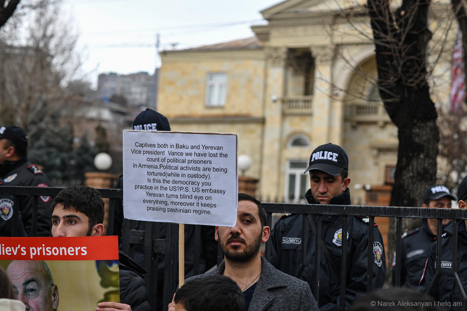 Փոխնախագահ Ջեյ Դի Վենսի՝ նախագահական նստավայր ժամանելու պահին Բաղրամյան պողոտայում հավաքվել էին տարբեր հասարակական և քաղաքական գործիչներ, քաղաքացիներ՝ Բաքվում ապօրինաբար պահվող հայ գերիների, ինչպես նաև Հայաստանի բանտերում գտնվող քաղբանտարկյալների ազատ արձակման պահանջով։