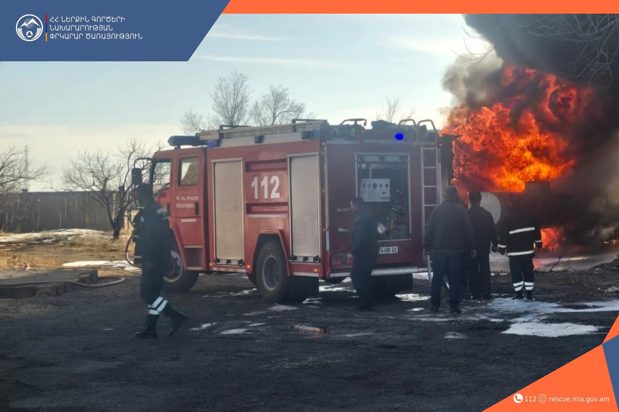Նախնական տվյալներով այրվում են պահեստային բաքերը և մեկ բեռնատար ավտոմեքենա։ Իրականացվում է հրդեհաշիջում։
