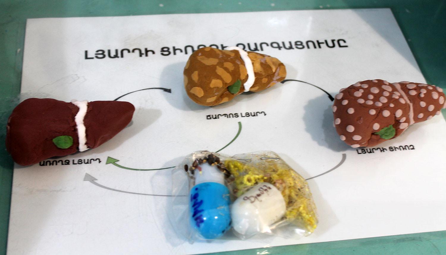 Լյարդի ցիռոզի մասին հիշեցնող պաստառներն այստեղ շատ են: Լաբորատորիան հյուրեր հաճախ է ունենում, այդ թվում՝ ուսանողներ ու աշակերտներ: Լիլիթի 11-ամյա դուստրը գիտական մի էքսպոյի համար լյարդի մոդելներ է պատրաստել պլաստիլինից՝ առողջ, ճարպակալած եւ ցիռոզով հիվանդ ժամանակ: Սրանք նախատեսված են աշակերտների համար, որպեսզի վերջիններս պատկերացում կազմեն, թե ինչ տեսք է ստանում լյարդը ցիռոզ հիվանդության ժամանակ: