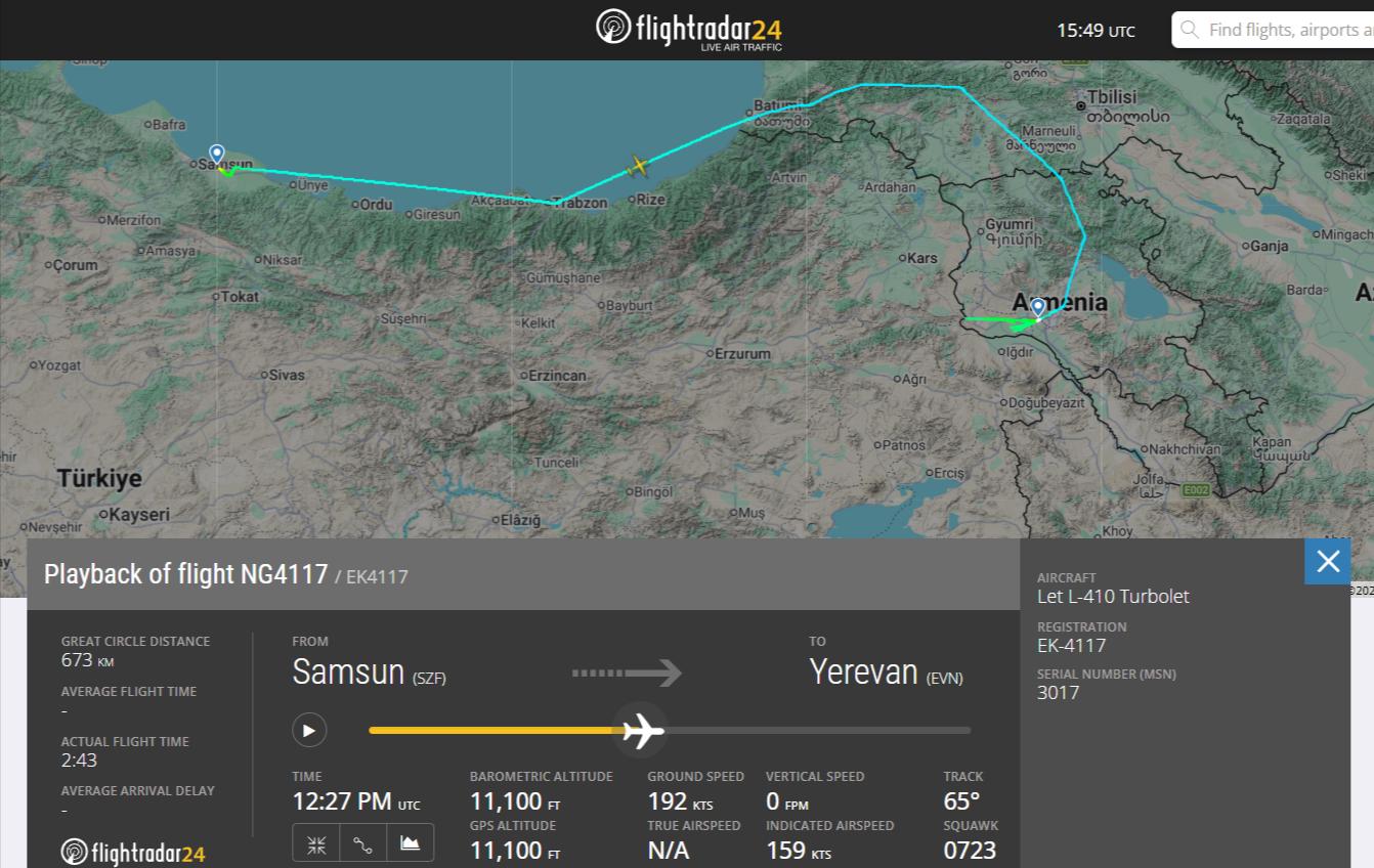 Թռիչքներին առցանց հետեւող flightradar24.com կայքի համաձայն՝ գրող Համո Սահյանի անունը կրող L-410-ը մարտի 23-ին չեխական Բռնոյից, որտեղ կանգնած էր սեպտեմբերից, թռել է բուլղարական Վառնա, ամսի 24-ին Վառնայից ուղղություն է վերցրել թուրքական Սամսուն, որտեղից էլ նույնը օրը թռել է Երեւան: