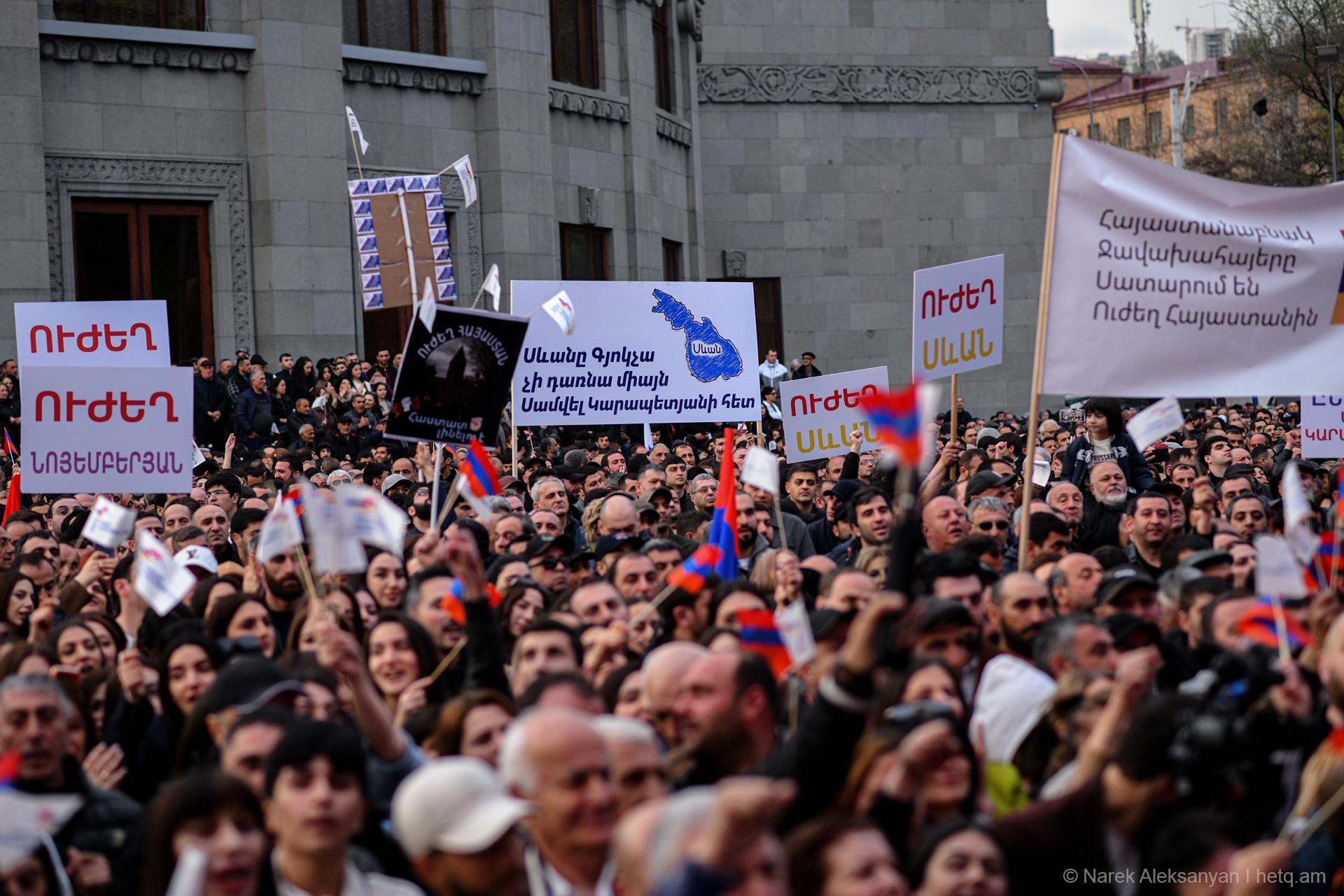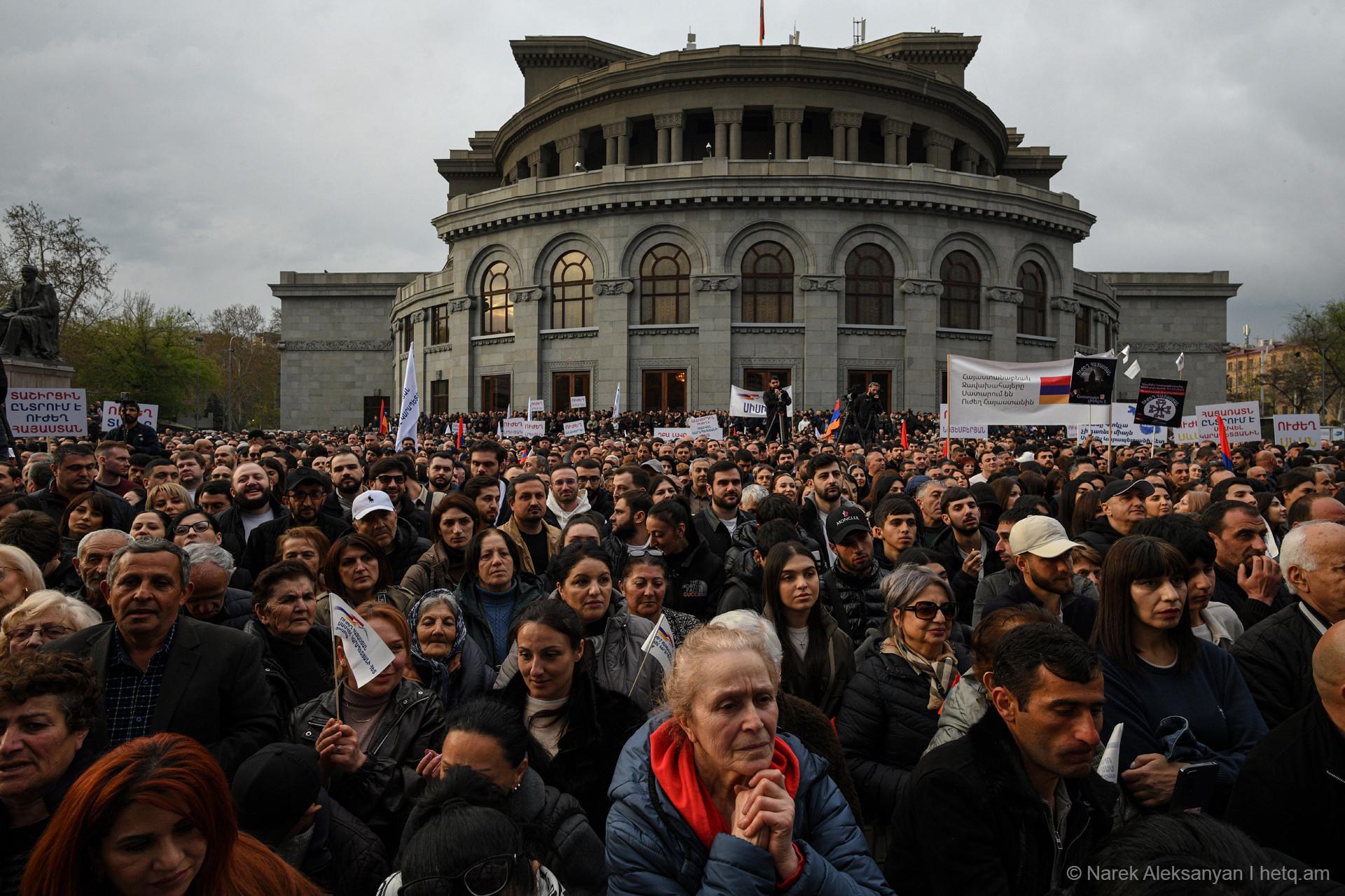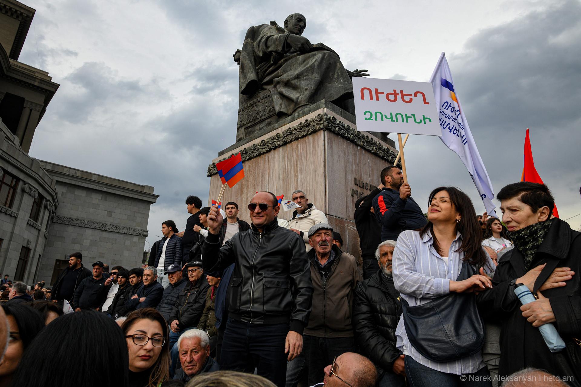 Այսօր՝ ապրիլի 11-ին, Ազատության հրապարակում տեղի ունեցավ «Ուժեղ Հայաստան Սամվել Կարապետյանի հետ» դաշինքի հանրահավաքը։ Հանրահավաքից առաջ կազմակերպիչները հայտարարել էին, որ առաջին անգամ ուղերձով հանդերձ կգա Սամվել Կարապետյանը։ Տնային կալանքի տակ գտնվող Կարապետյանի՝ նախապես նկարահանված «Փոփոխության ելույթ»-ը Ազատության հրապարակում հնչեց բեմում տեղադրված մեծ էկրաններից։