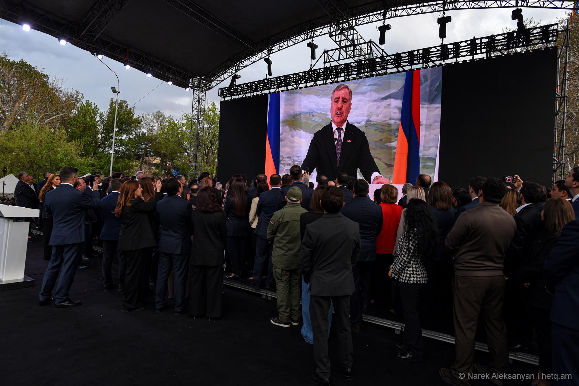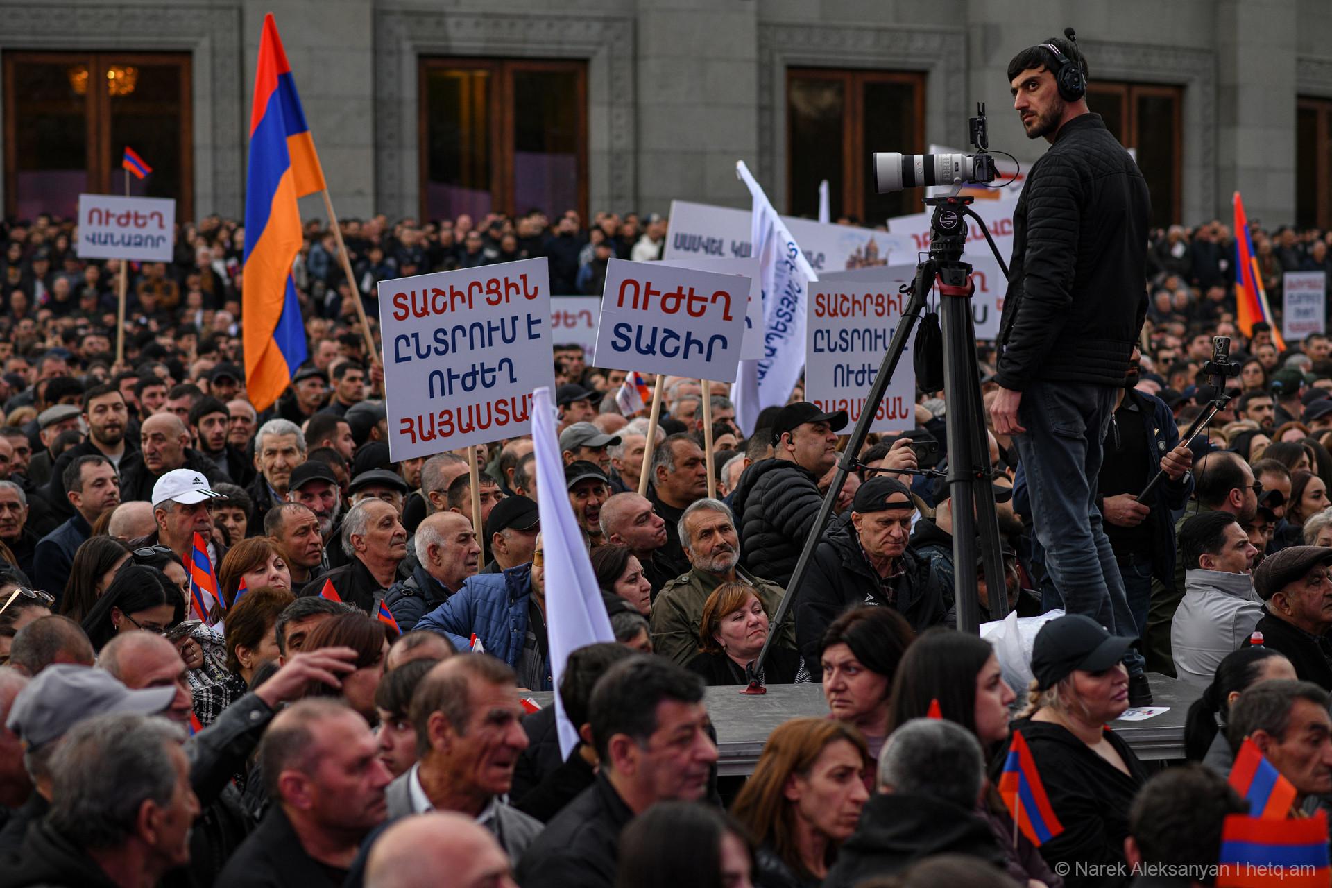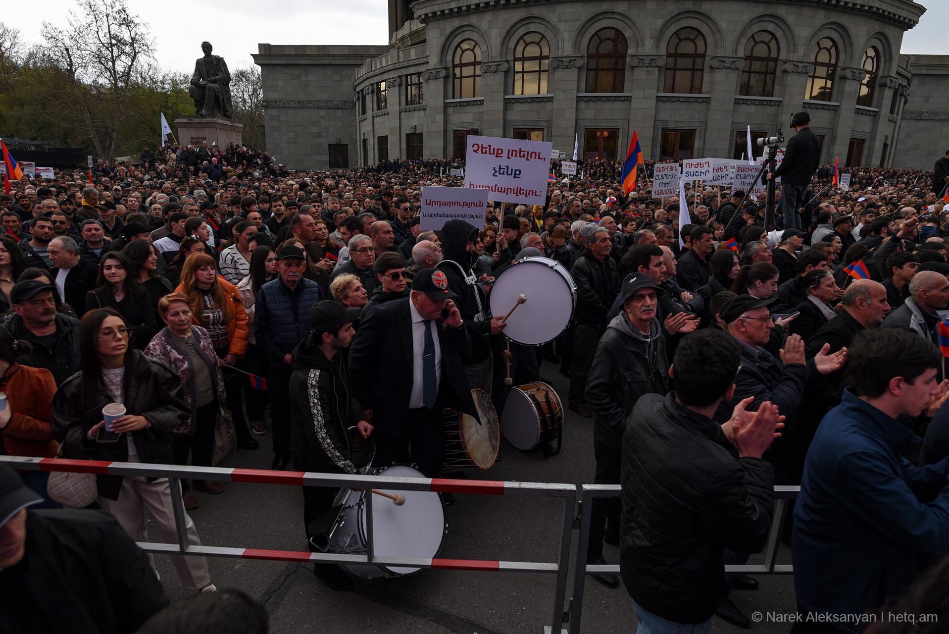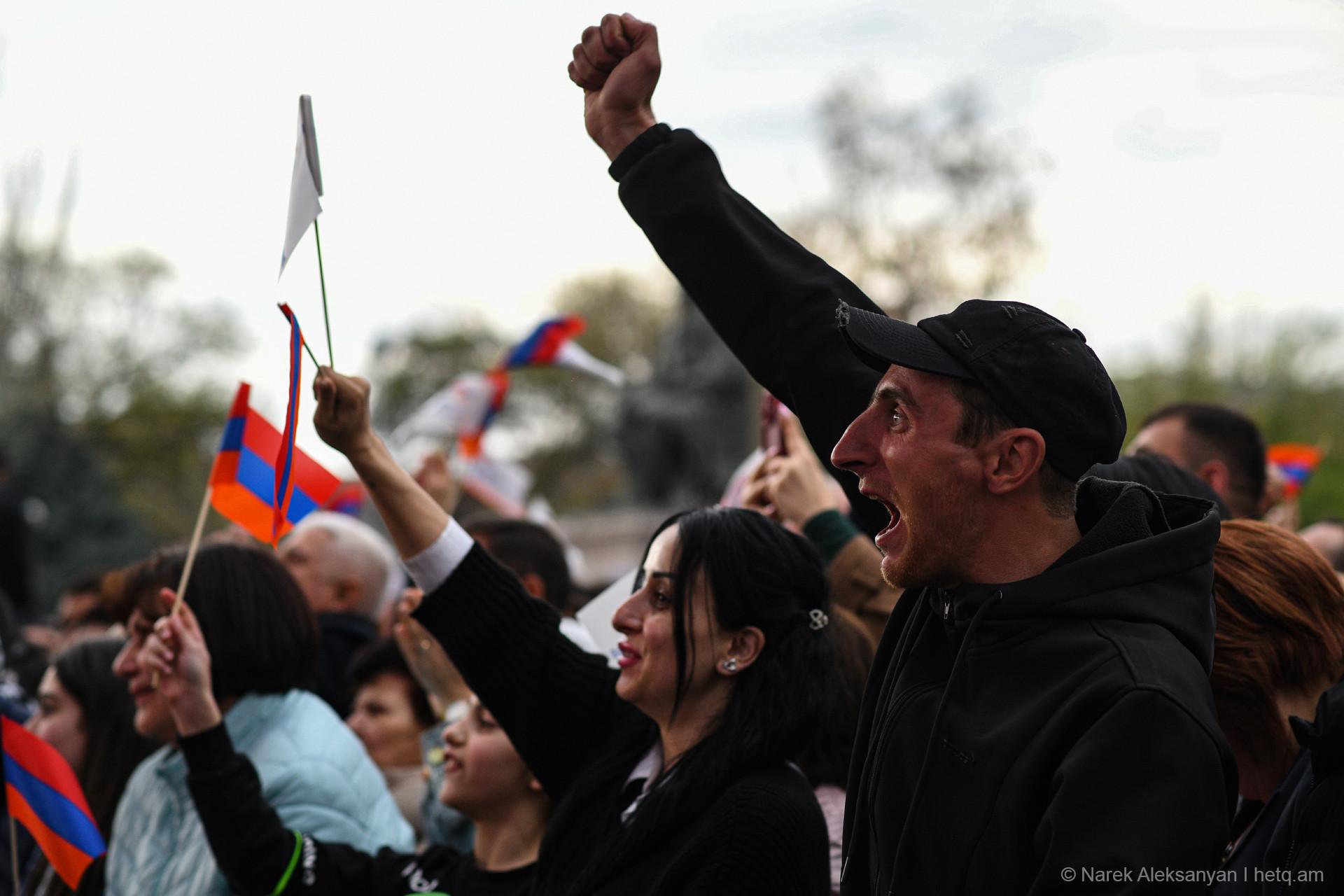 Այսօր՝ ապրիլի 11-ին, Ազատության հրապարակում տեղի ունեցավ «Ուժեղ Հայաստան Սամվել Կարապետյանի հետ» դաշինքի հանրահավաքը։ Հանրահավաքից առաջ կազմակերպիչները հայտարարել էին, որ առաջին անգամ ուղերձով հանդերձ կգա Սամվել Կարապետյանը։ Տնային կալանքի տակ գտնվող Կարապետյանի՝ նախապես նկարահանված «Փոփոխության ելույթ»-ը Ազատության հրապարակում հնչեց բեմում տեղադրված մեծ էկրաններից։