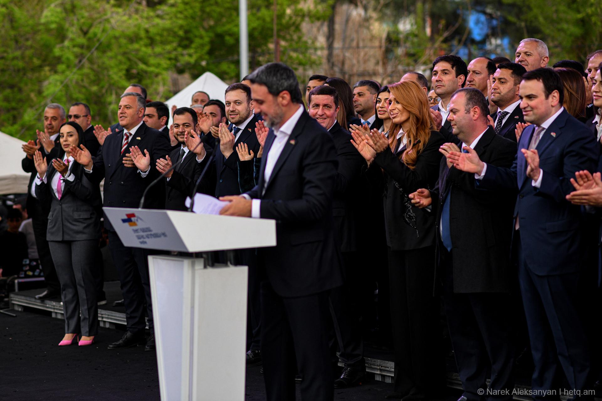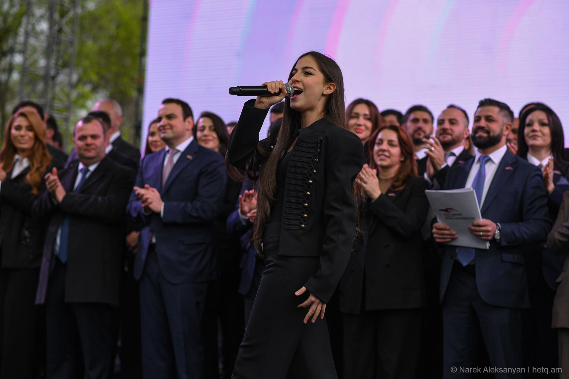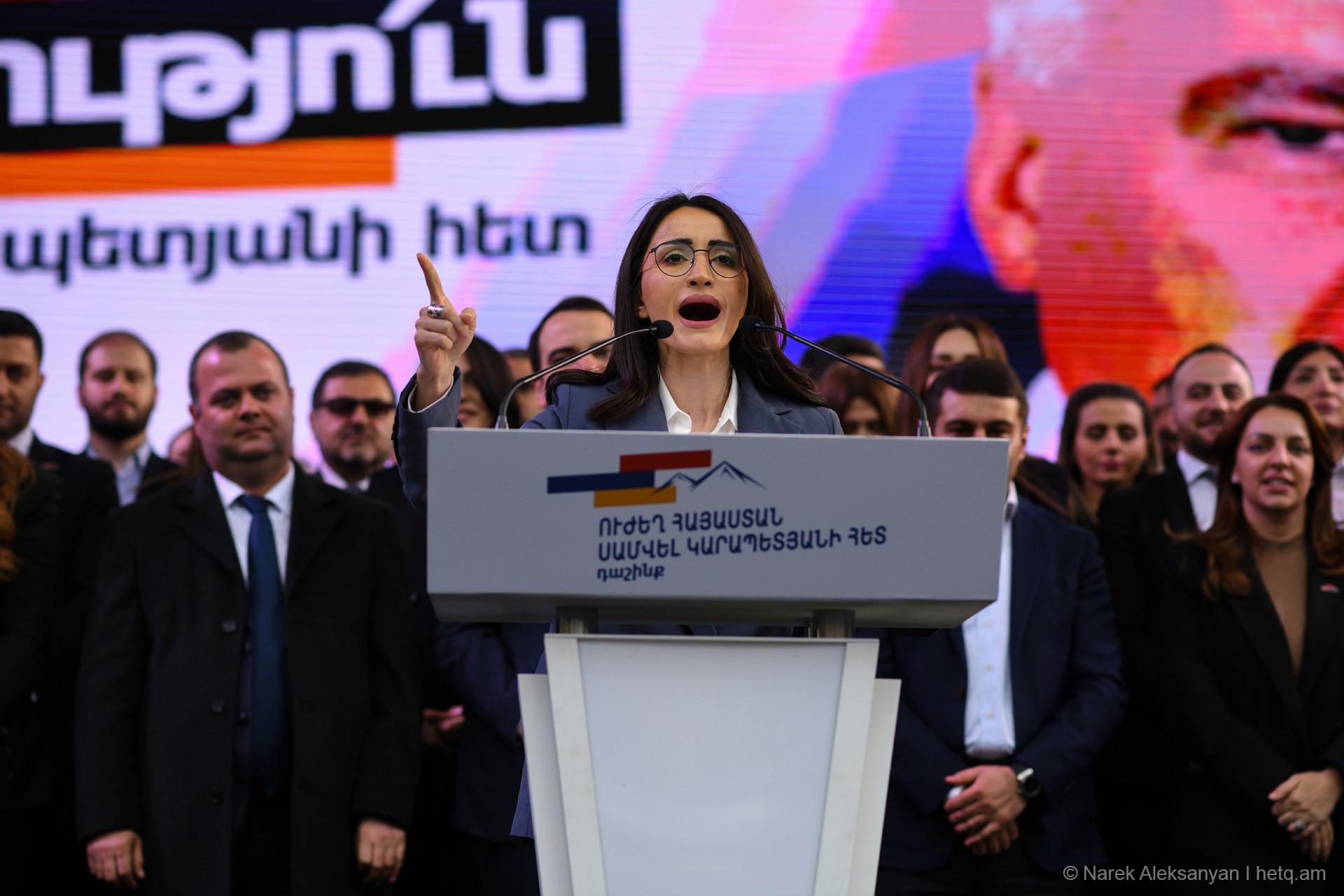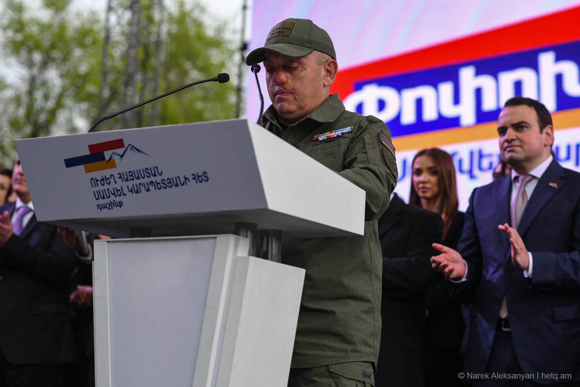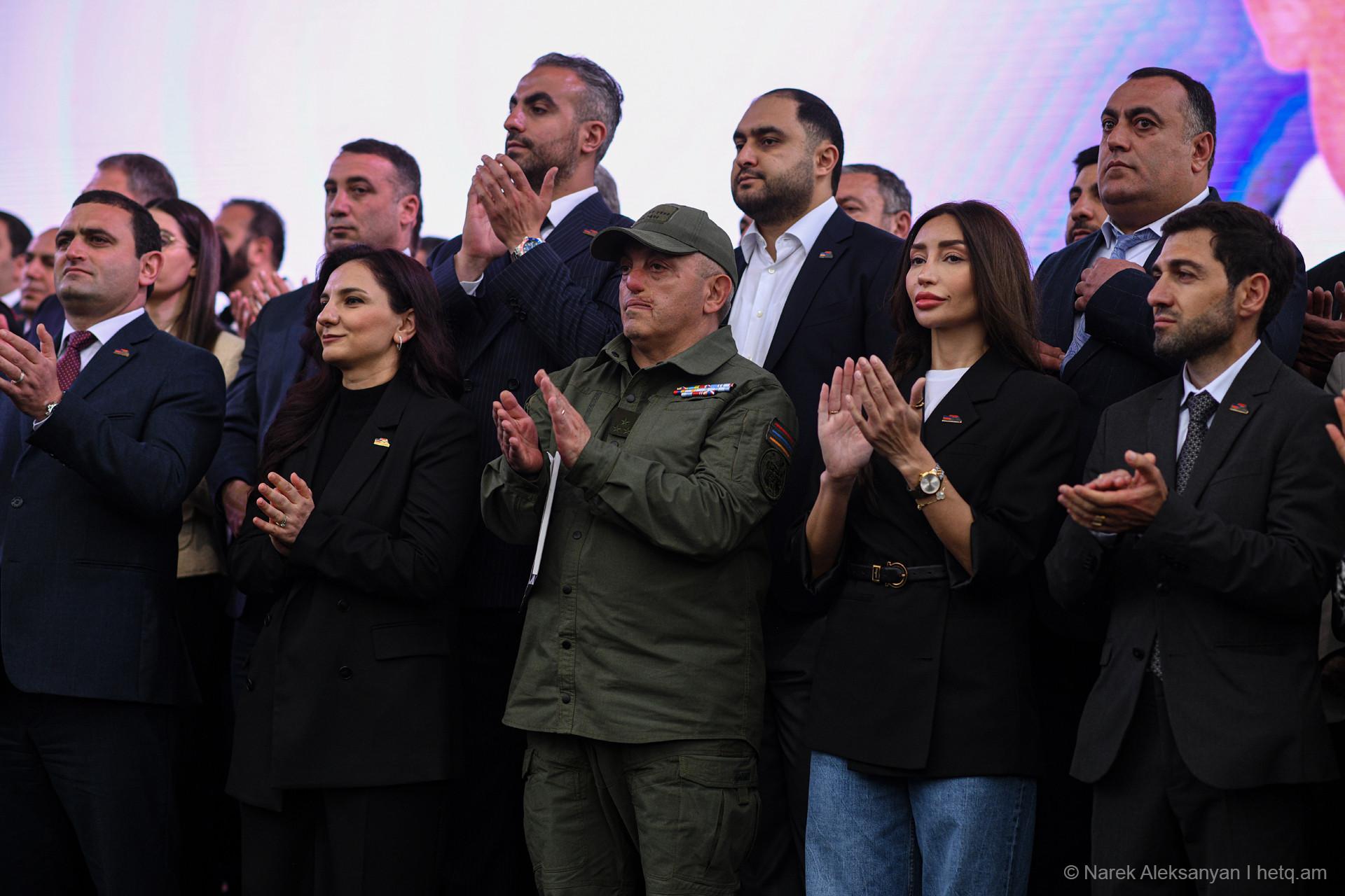 «Փոփոխություն միայն Սամվել Կարապետյանի հետ» կարգախոսով հանրահավաքին հաջորդեց երթ, որն առաջնորդում էր «Ուժեղ Հայաստան» դաշինքի ընտրական ցուցակի առաջին համար Նարեկ Կարապետյանը, Սամվել Կարապետյանի եղբայր Կարեն Կարապետյանը, անվտանգության հարցերով թիմի ղեկավար Արթուր Ավանեսյանը (Կանդազ)։