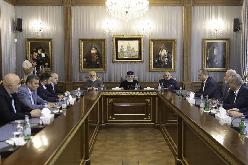 Հանդիպմանը Ամենայն Հայոց Կաթողիկոսը և Արցախի պետական այրերը քննարկեցին հայրենազրկված արցախցիների առջև ծառացած մարտահրավերների հաղթահարմանը և արցախահայության իրավունքների պաշտպանությանը վերաբերող հարցեր։