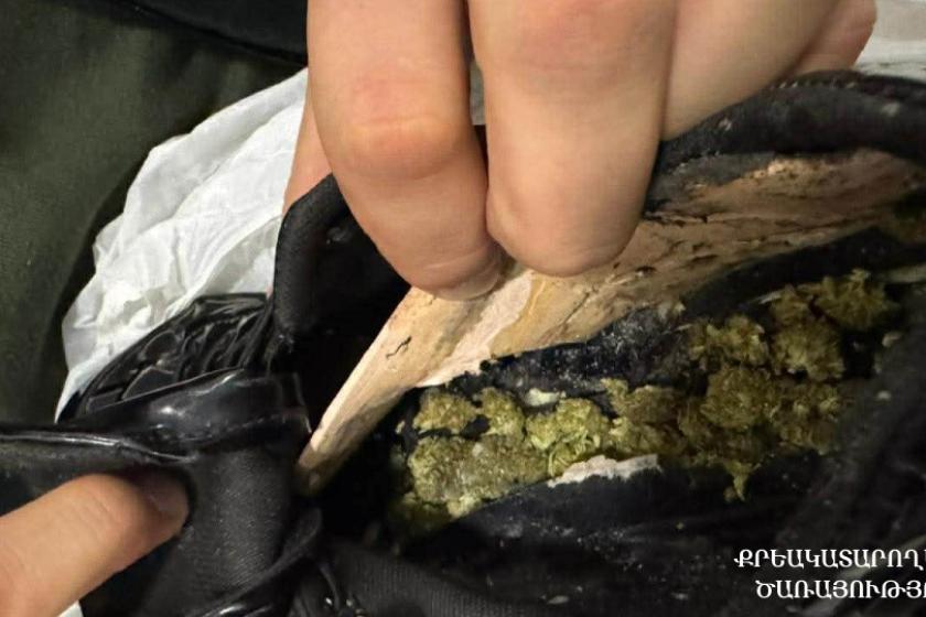 Նրա անձնական իրերի մեջ առկա սպորտային կոշիկների ներբանների միջից հայտնաբերել են թմրամիջոցների նմանվող զանգվածներ, մասնավորապես՝ 14,52 գրամ դեղնականաչավուն, բուսական զանգված և 7,39 գրամ սպիտակ, բյուրեղանման զանգված։