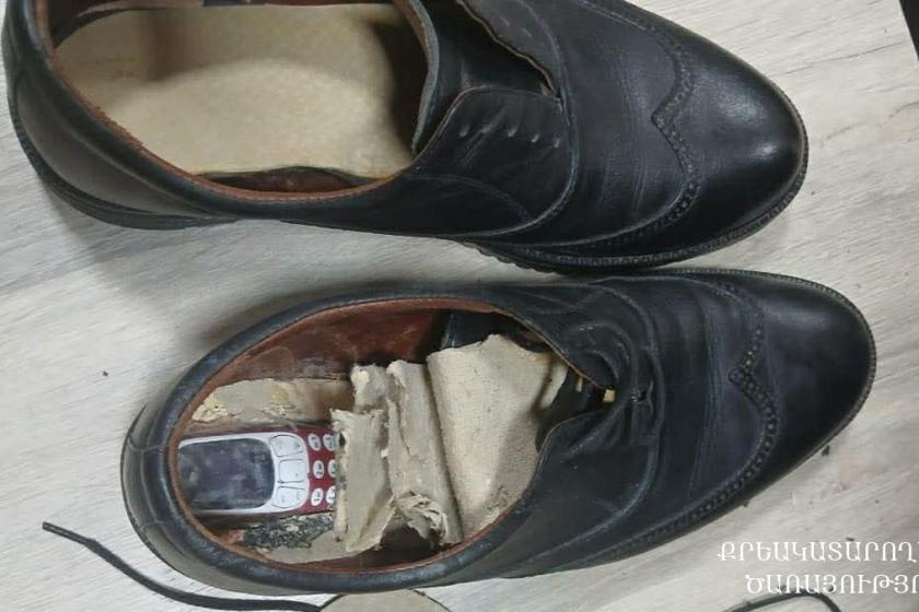 Արդյունքում՝ նրա կոշիկի ներբանի տակից հայտնաբերել են մեկ բջջային հեռախոս, ևս մեկ բջջային հեռախոս հայտնաբերվել է անձնական իրերի մեջ առկա բնական հյութի տարայի միջից: