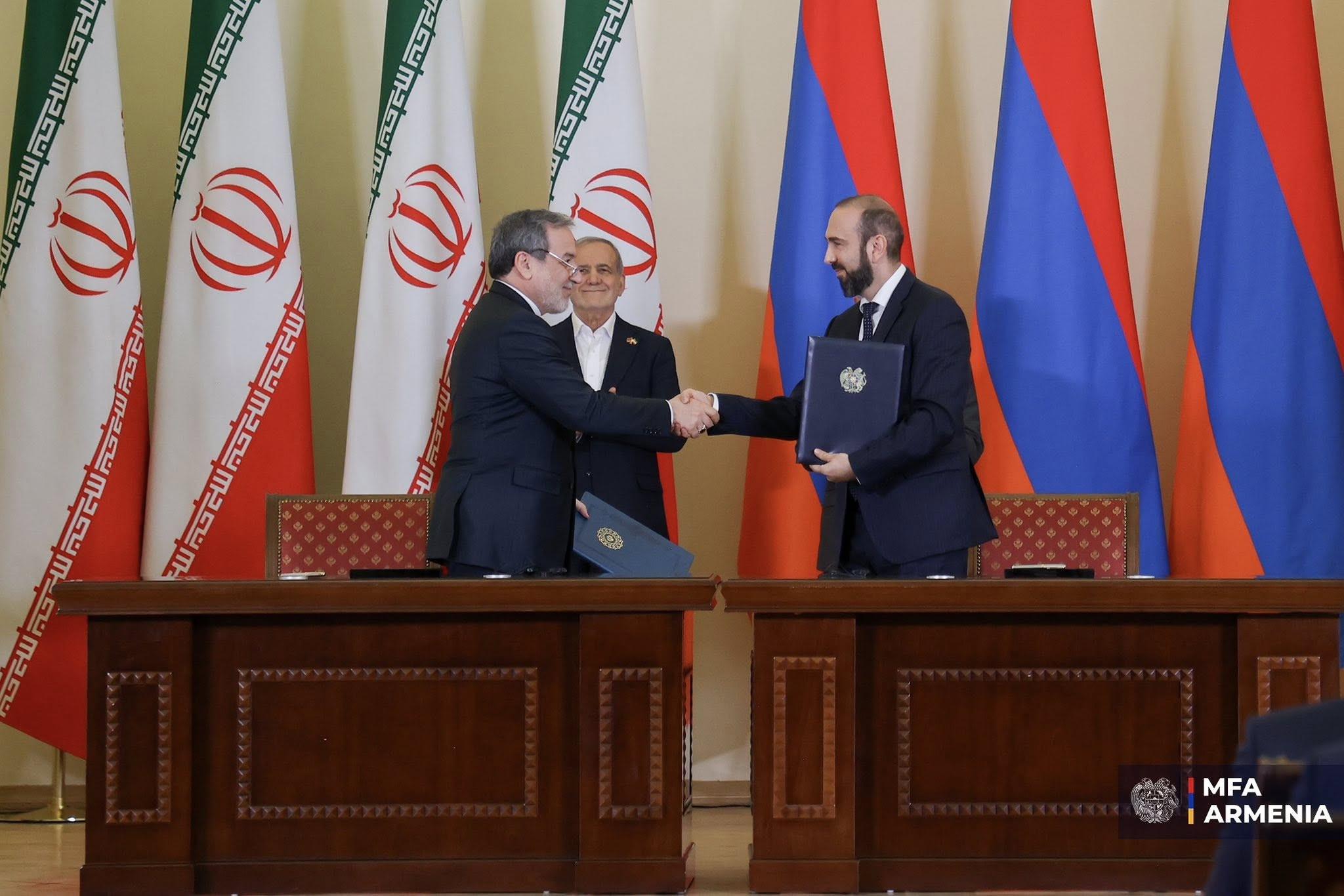 The foreign ministers of Armenia and Iran (Ararat Mirzoyan, Seyed Abbas Araghchi, in Yerevan today, signed a MoU (memorandum of understanding) on political consultations between their two offices.