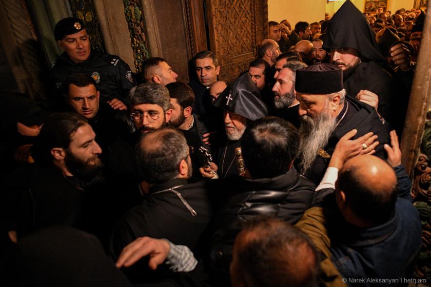The church has described Asatryan’s refusal to hand over the keys to the monastery and his officiating at today’s liturgy as “a gross canonical violation and a criminally punishable act.”