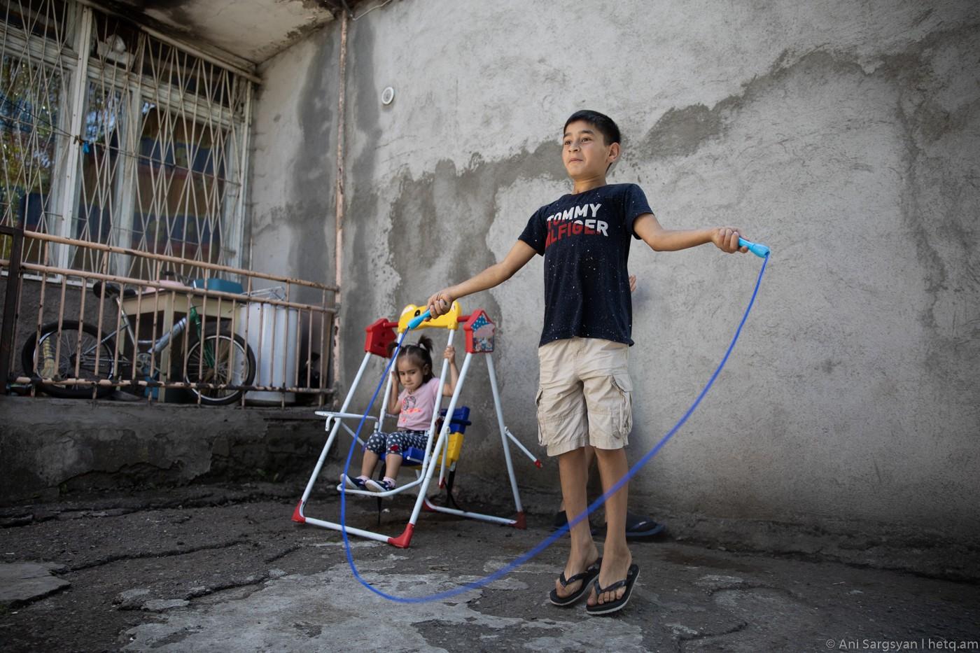 Հովոն մեզ ուղեկցում է գլխավոր փողոց։ Ճանապարհը ավազոտ է, քարուքանդ։ Շենքի անկյունում մի քանի վայրկյան կանգնում ենք, զրուցում։ Գյումրեցի 12-ամյա տղան ընտանիքի 9 երեխաներից ավագն է։ Երբ դեռ փոքր էր, հայրը նրան ու եղբորը՝ Գոռին, սարեր էր տանում՝ անասուններ պահելու։ Գյուղի 100 գլուխ անասուններին երկու եղբայրներն էին պահում։ Արեւի ճառագայթներն ընկնում են Հովոյի դեմքի պեպեններին՝ ընդգծելով աչքերում թաքնված տխրությունը։ Հայացքը թեքում է ինձնից, երբ խոսում է սարերում անցկացրած կյանքի մասին։ Ասում է՝ դասերից շատ էին բացակայում, բայց ստիպված էին գնալ սարեր։ Դա հոր կամքն էր, որը հաճախ հարբած քնած էր լինում, եւ տղաները պետք է հսկեին նախիրը։ Հովոն ասում է՝ երկու եղբայրներով էլ շատ էին ուզում դպրոց գնալ, բայց ընտրության հնարավորություն չունեին։ Դպրոց գնացող իրենց հասակակիցներին երբեմն երանությամբ էին նայում։