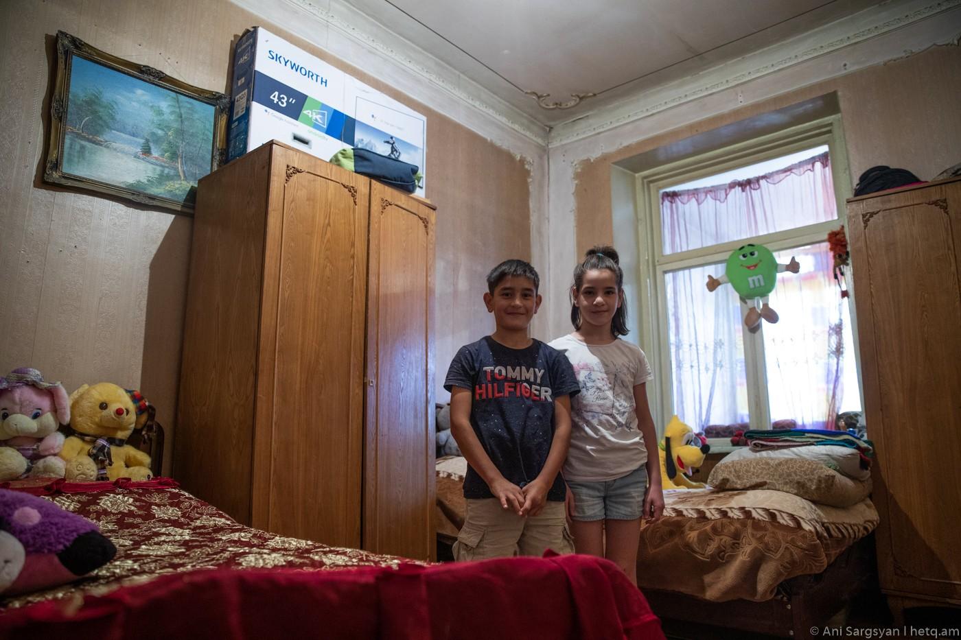 9 երեխաների մայրը մեզ հրավիրում է ներս։ Նախասրահում երեխաներն արագ տեղավորվում են ով ոնց կարողանա՝ Հովհաննեսը, Գոռը, Մերին, Ալբերտը, Գրիգորը, Սամվելը, Մարիամը, Անգելինան եւ Նարեկը։ Նրանցից ավագը 12-ամյա Հովհաննեսն է, կրտսերը՝ 3-ամյա Նարեկը։