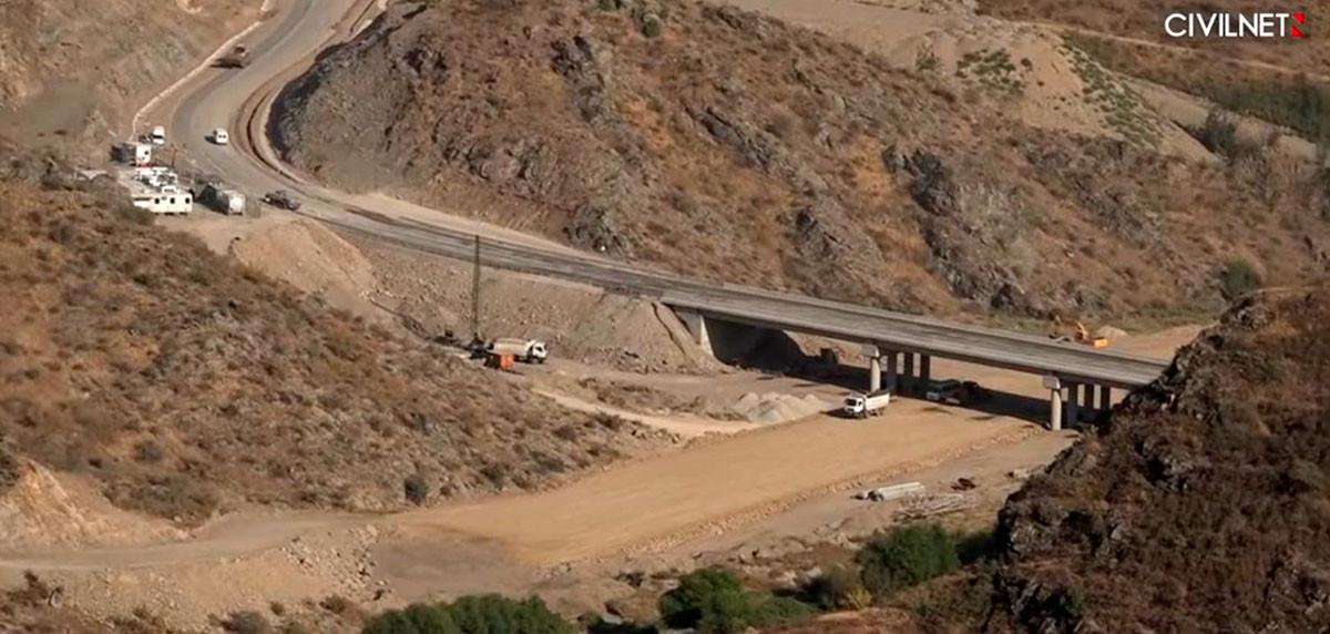 Ծաղկաբերդ-միջանցք-Աղավնո-Բերձոր ճանապարհի շինարարություն՝ Հագարիի կամրջի տակ․ վերեւի ձախ անկյունում՝ ՌԴ զորախմբի թիվ 1 դիտակետը