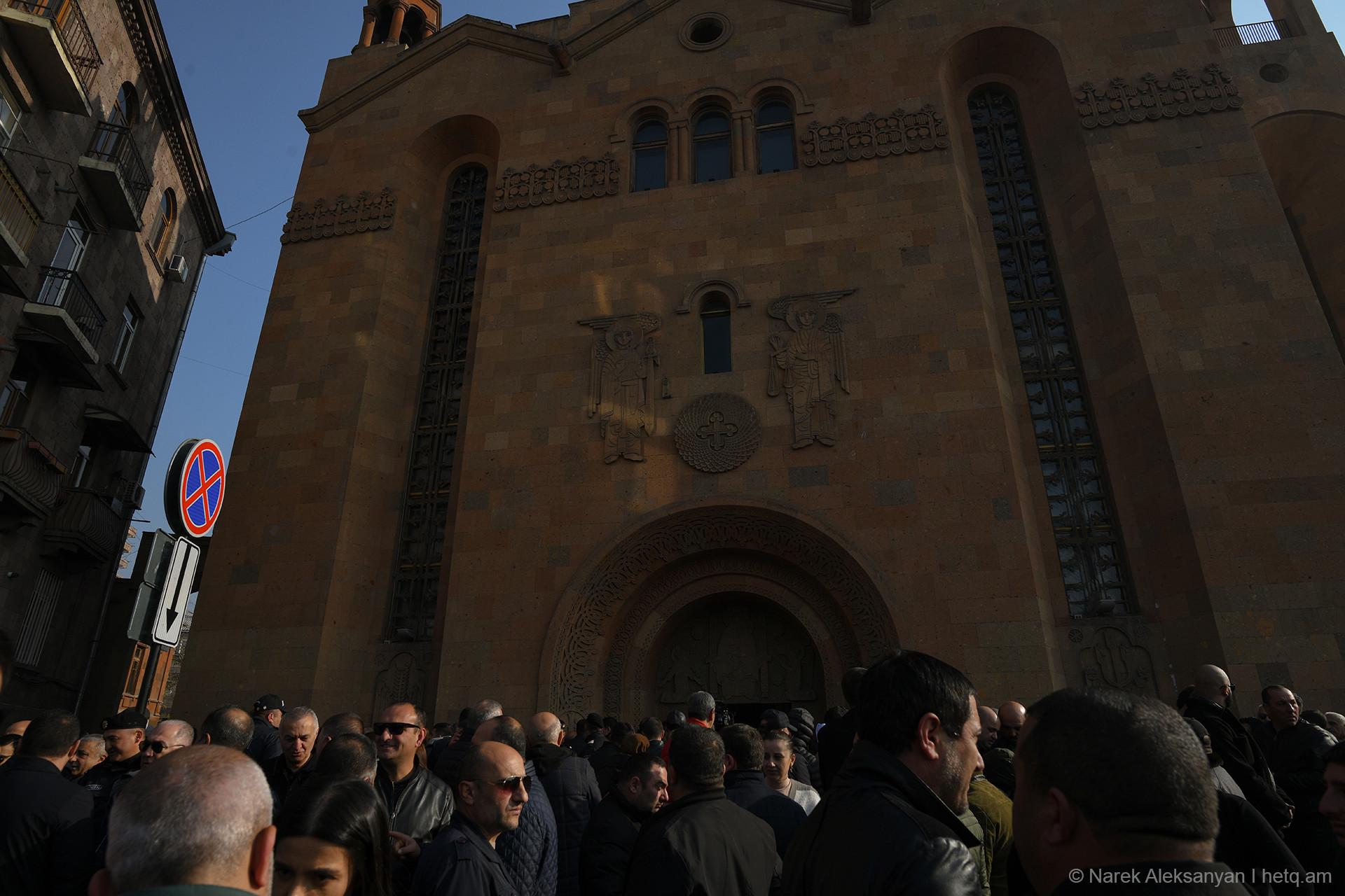 Այսօր Սուրբ Սարգիս եկեղեցում Նավասարդ արքեպիսկոպոս Կճոյանի տնօրինությամբ մատուցվող պատարագի ընթացքում, որին ներկա էր նաև վարչապետ Նիկոլ Փաշինյանը, չհնչեց Ն.Ս.Օ.Տ.Տ. Գարեգին Բ. Ամենայն Հայոց Կաթողիկոսի անունը, ինչպես սովորաբար չի հնչում վերջին շրջանում Փաշինյանի մասնակցությամբ պատարագներին։ Փոխարենը մի քանի քաղաքացիներ հնչեցրին կաթողիկոսի անունը, որից հետո վարչապետի անվտանգության աշխատակիցները նրանց դուրս հանեցին եկեղեցուց։ Վեհափառի անունը եկեղեցում բարձրաձայնած Հովհաննես Իշխանյանին և Հայկ Դորունցին տարան ոստիկանական մեքենայով։ «Հետքի» հետ զրույցում Իշխանյանը հայտնեց, որ իրենց ոստիկանական բաժանմունք չեն տարել, այլ բաց են թողել ճանապարհին. Իշխանյանին` Մայր Հայաստան արձանի մոտ, իսկ Դորունցին՝ Հաղթանակ զբոսայգու մուտքի մոտ։ Ոստիկանությունը նրանց չի ներկայացրել՝ ինչ հիմքով են տանում, միայն նշել են, որ հեռացրել են դեպքի վայրից։