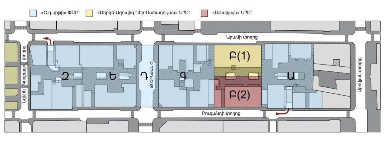 Տարածքը Երևանի կենտրոնական թաղամասում է` հետիոտնային շարժման ամենաբանուկ հատվածում: Այն քաղաքի միակ հատվածն էր, որտեղ պահպանվել էր պատմական կառուցապատումը: Պատմական կառույցների հիմնական ֆոնդում 19-րդ դարի և 20-րդ դարասկզբի բնակելի տներն են` միաձուլված ներքին բակերով և այգիներով: