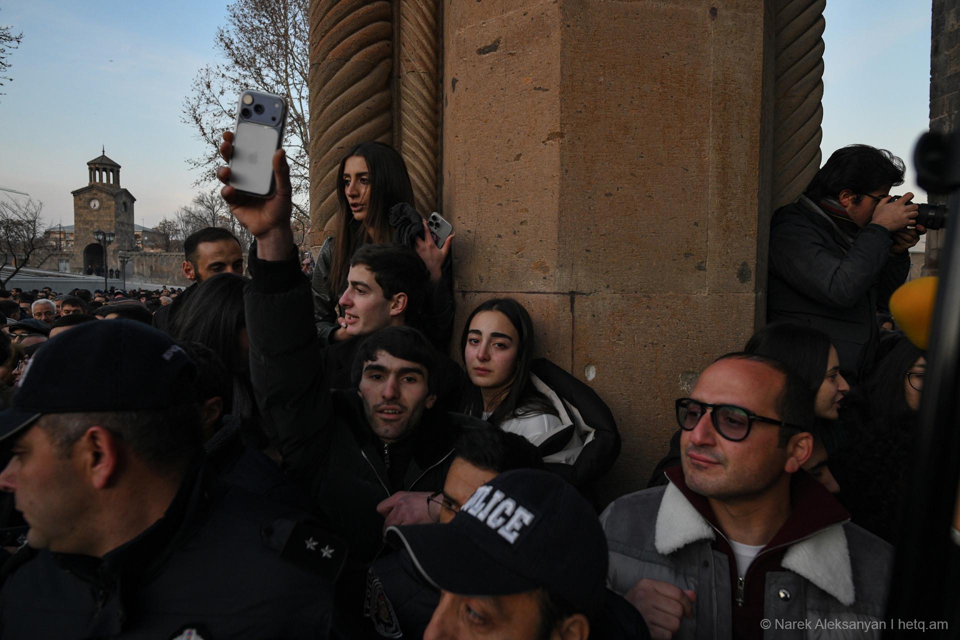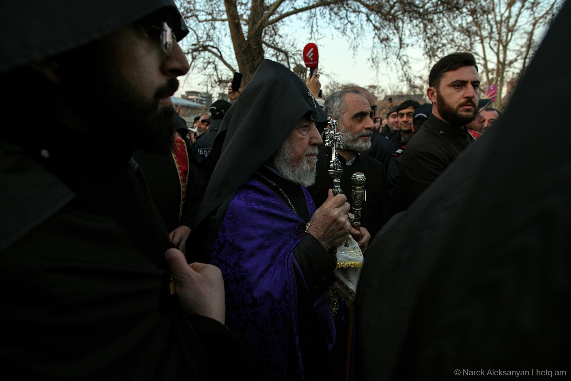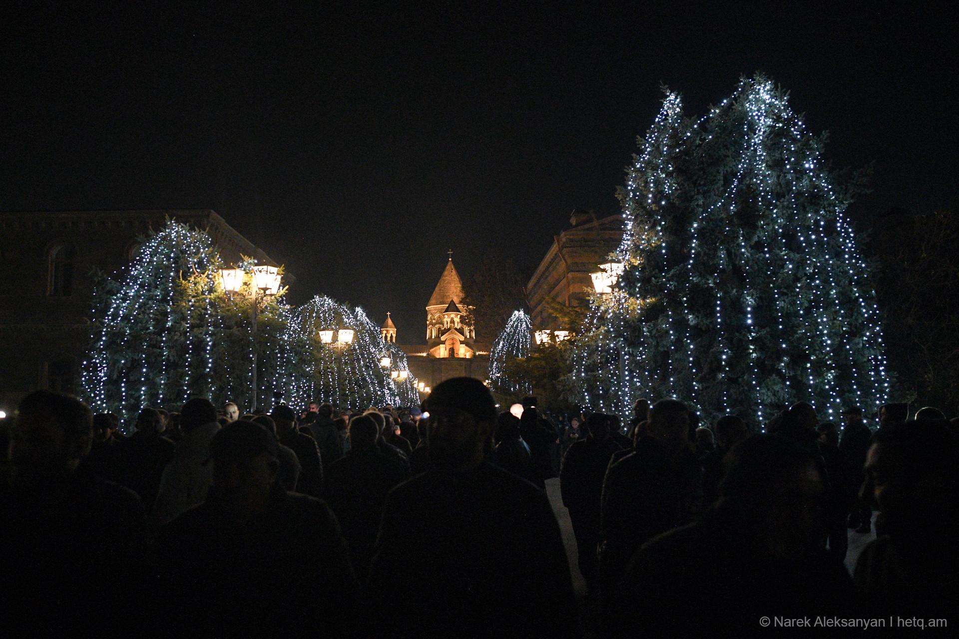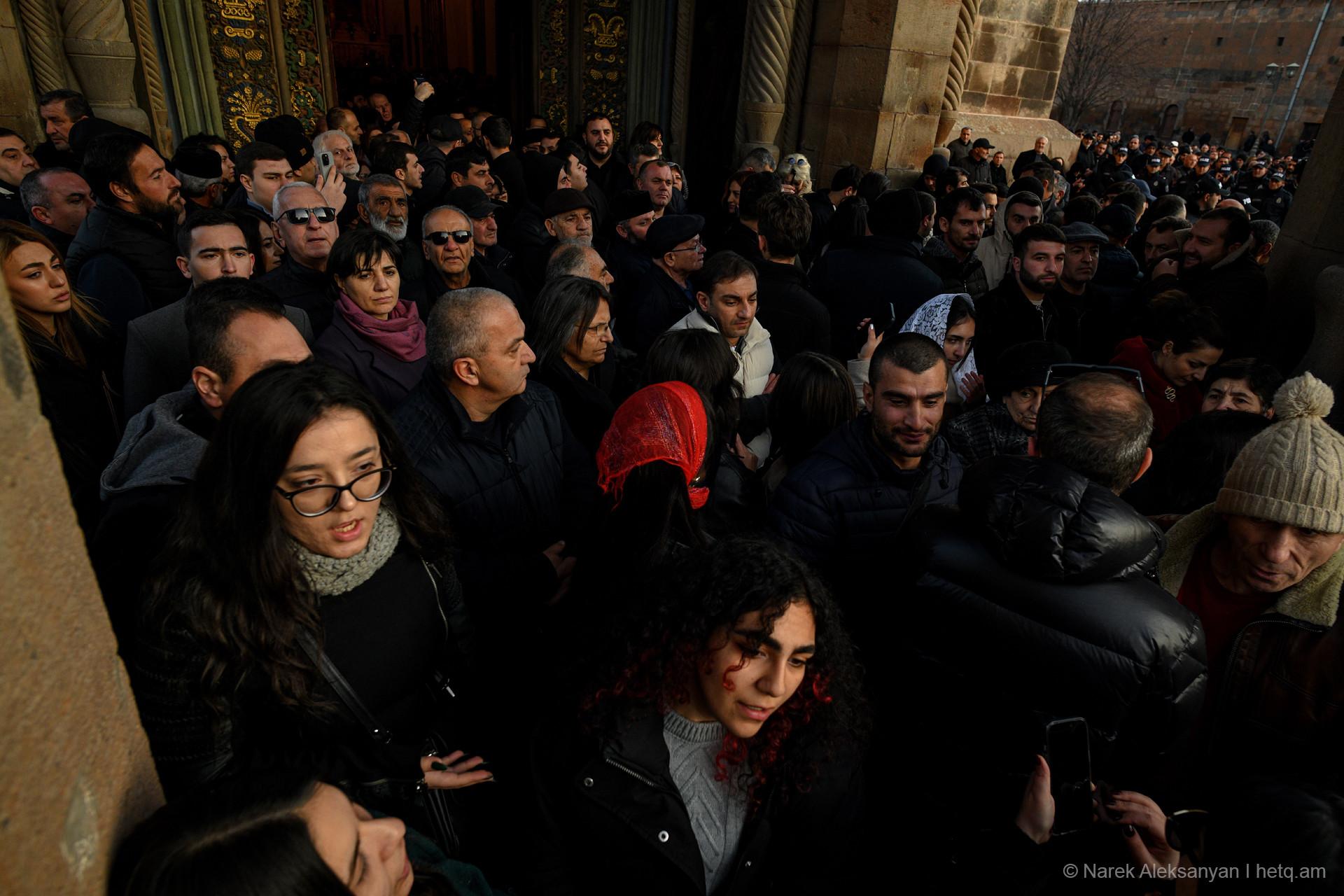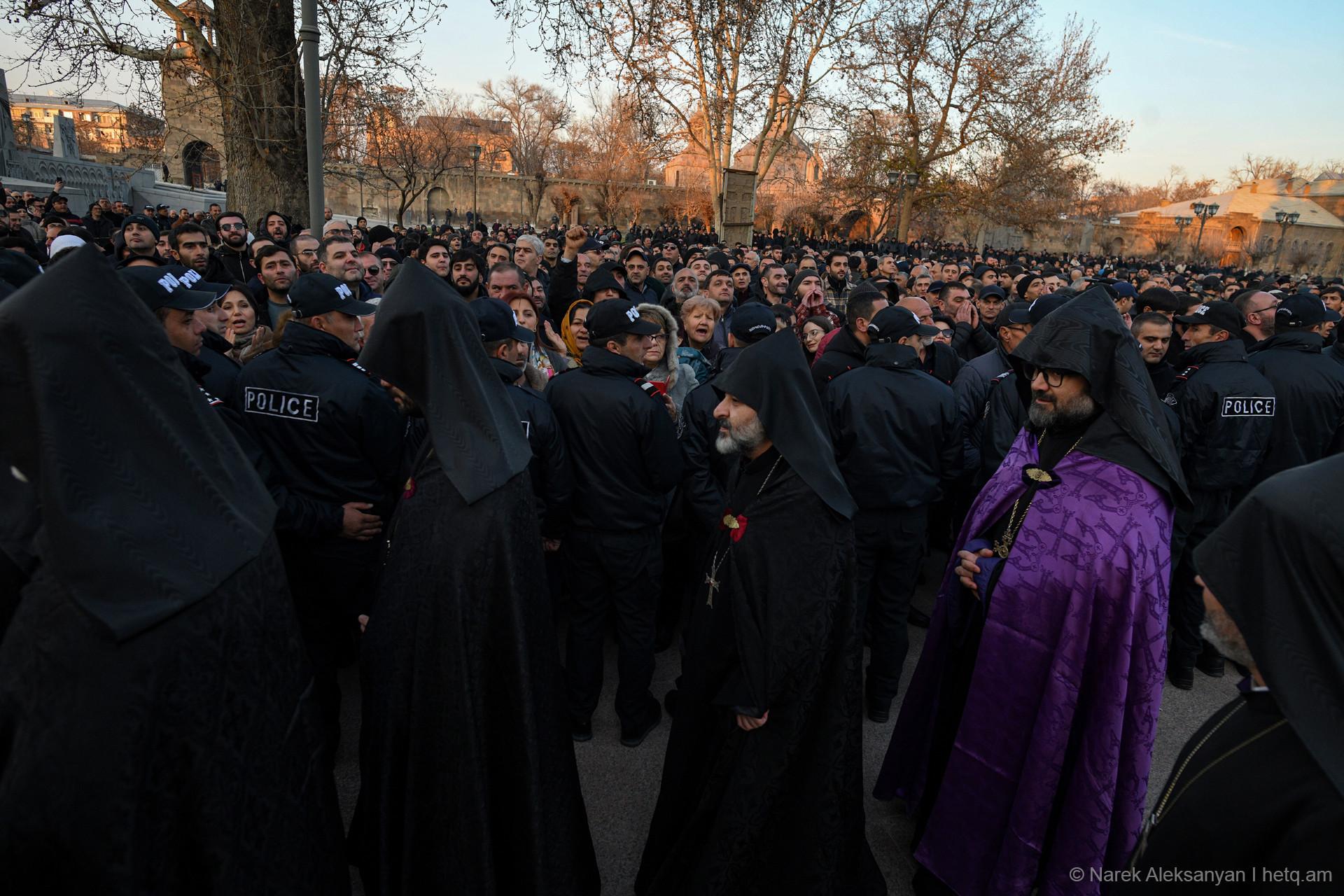 Քիչ անց Մայր Աթոռի բակում հավաքված քաղաքացիները դուրս եկան եկեղեցու տարածքից։ Ավելի վաղ Մայր Աթոռից հեռացել էին եպիսկոպոսները, որոնց անունից հայտարարություն էր տարածվել՝ հավաքվել Մայր Աթոռ Սուրբ Էջմիածնում՝ Կաթողիկոսին հանգստի կոչելու պահանջով։