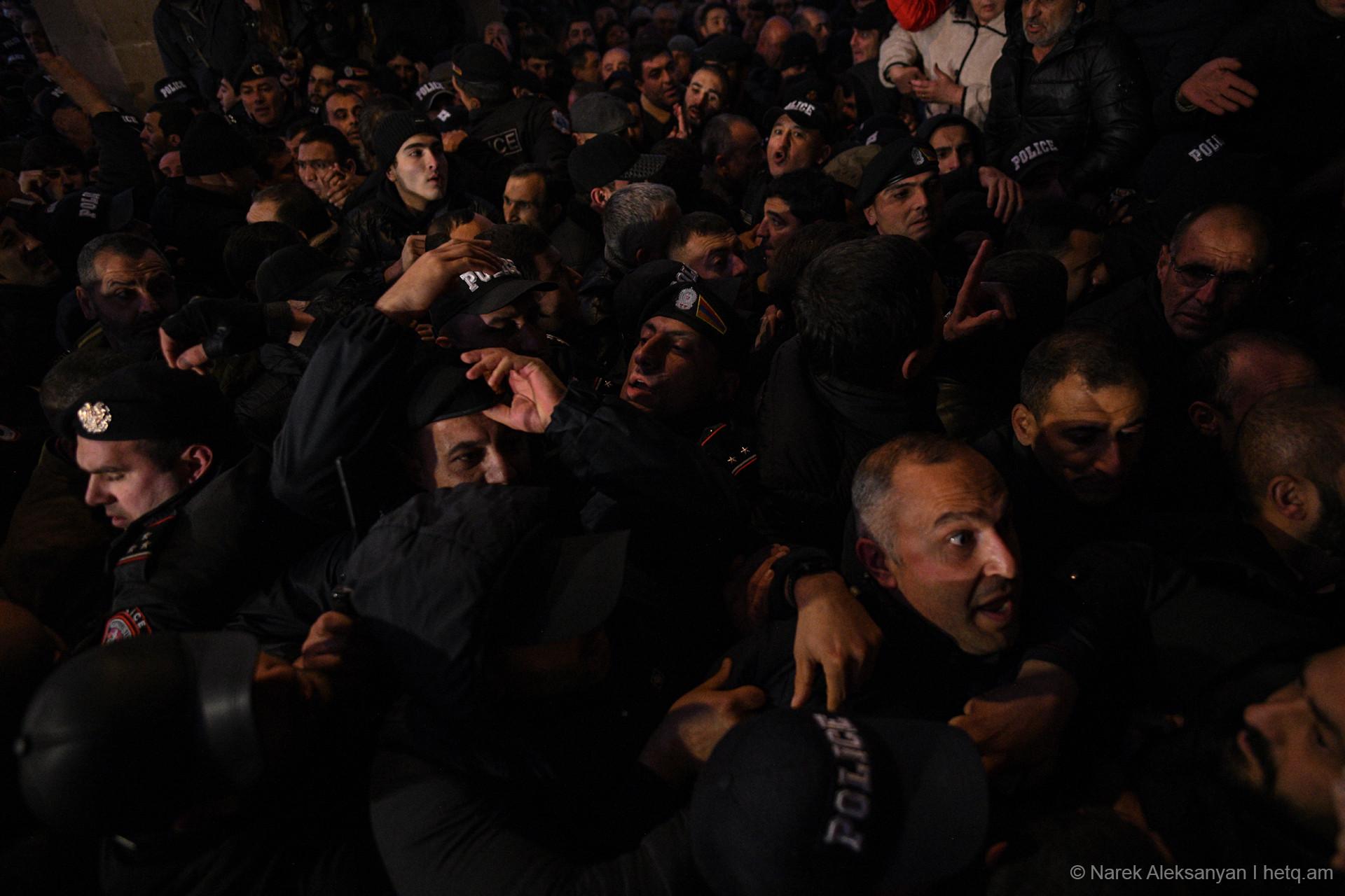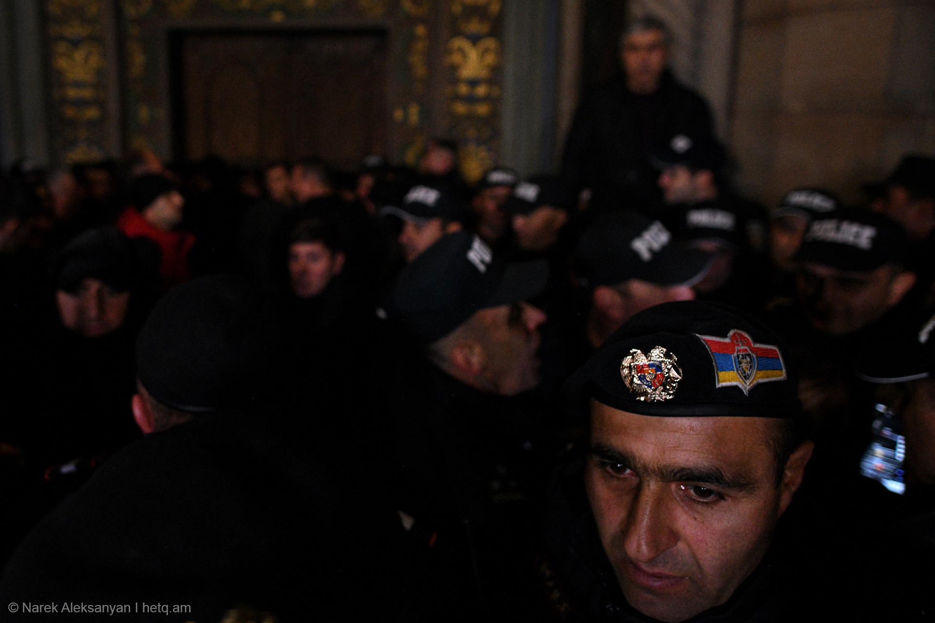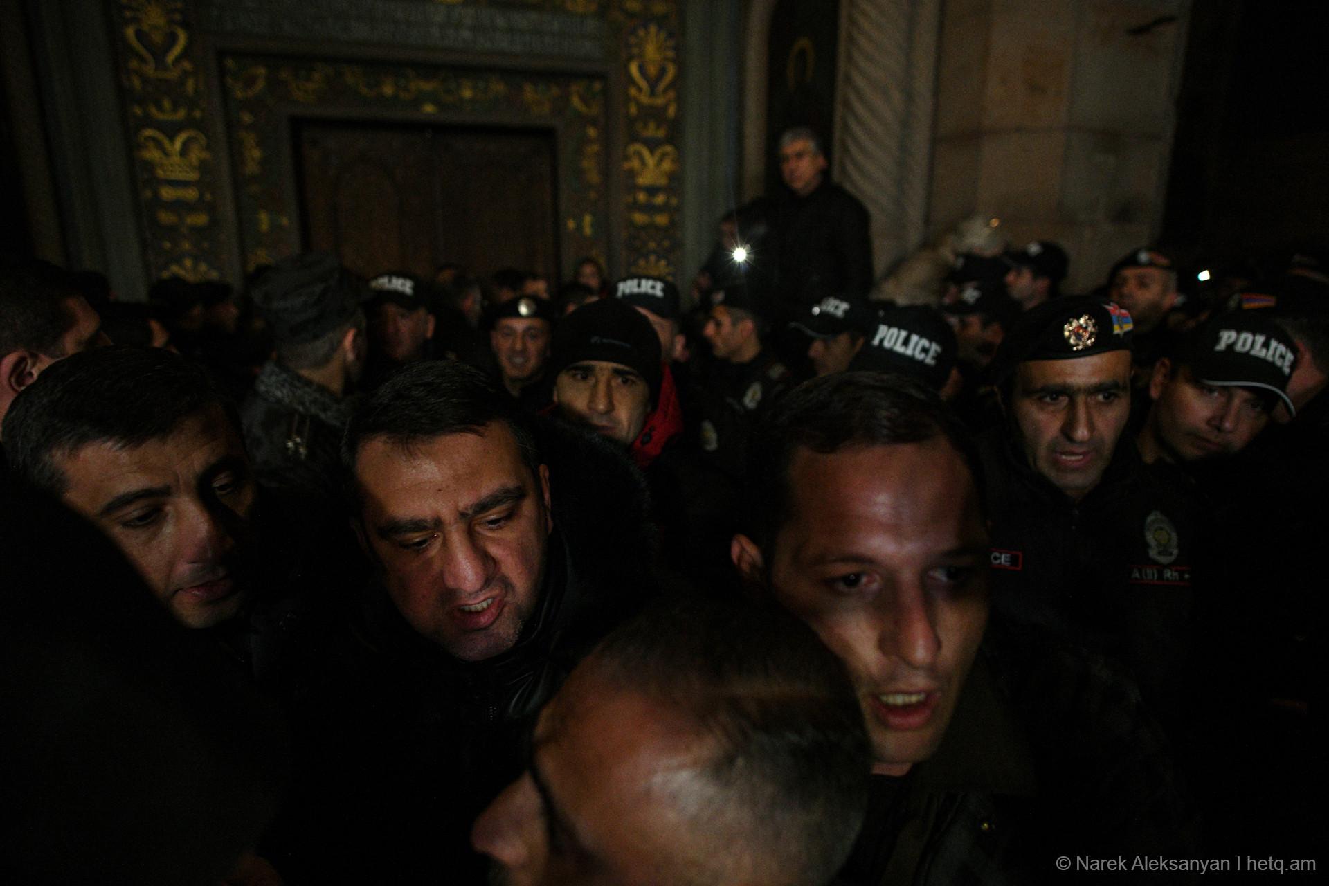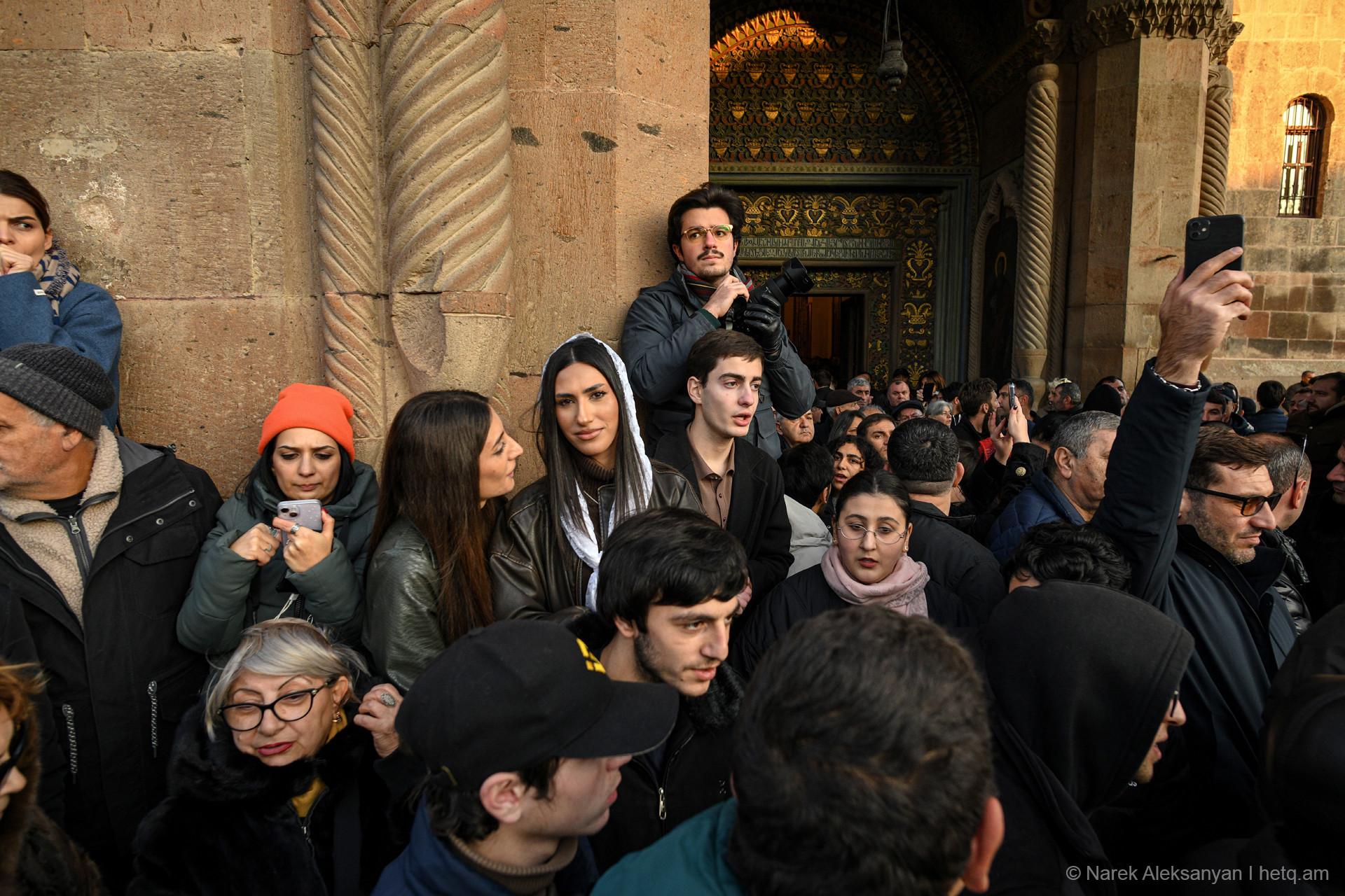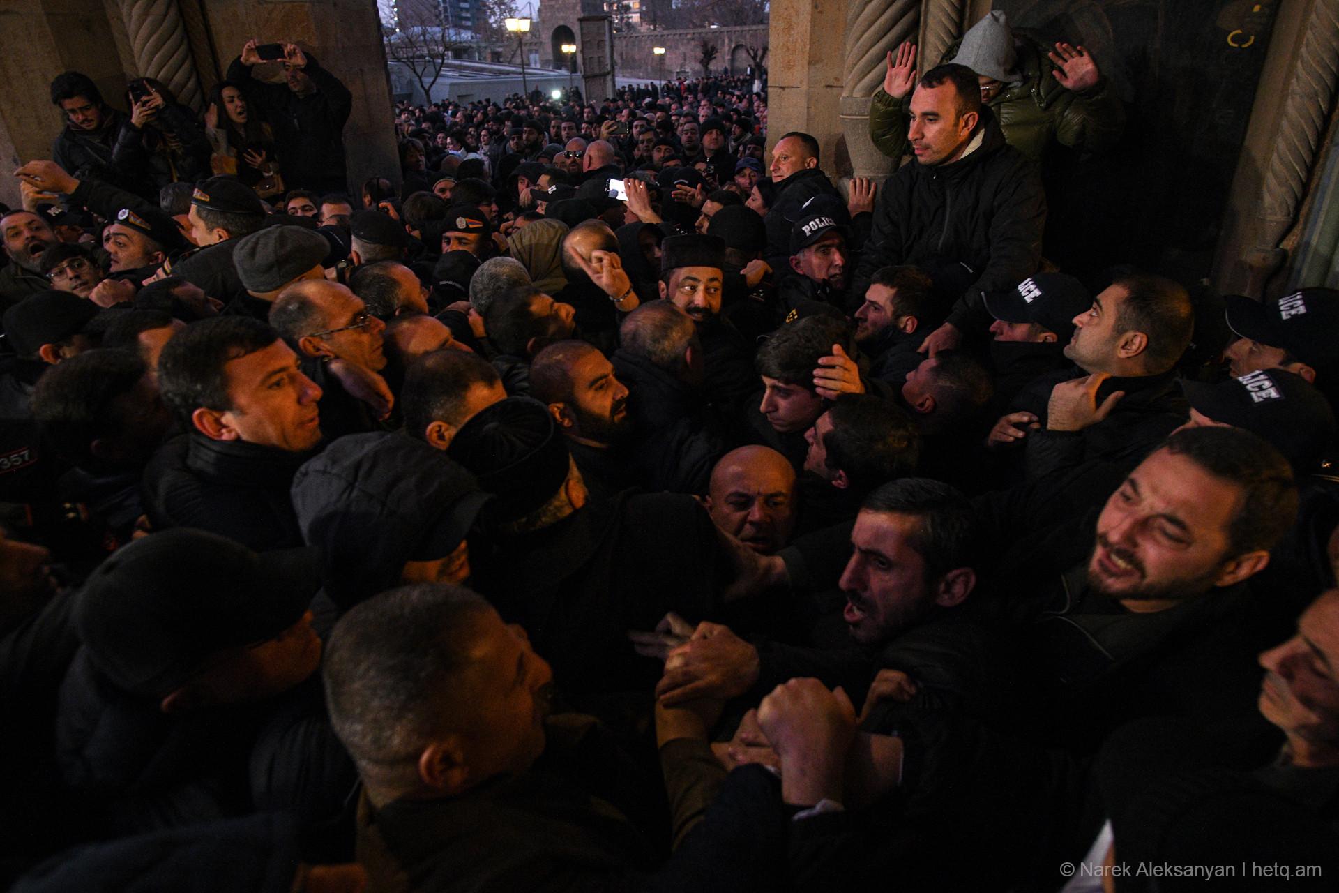 Քիչ անց Մայր Աթոռի բակում հավաքված քաղաքացիները դուրս եկան եկեղեցու տարածքից։ Ավելի վաղ Մայր Աթոռից հեռացել էին եպիսկոպոսները, որոնց անունից հայտարարություն էր տարածվել՝ հավաքվել Մայր Աթոռ Սուրբ Էջմիածնում՝ Կաթողիկոսին հանգստի կոչելու պահանջով։