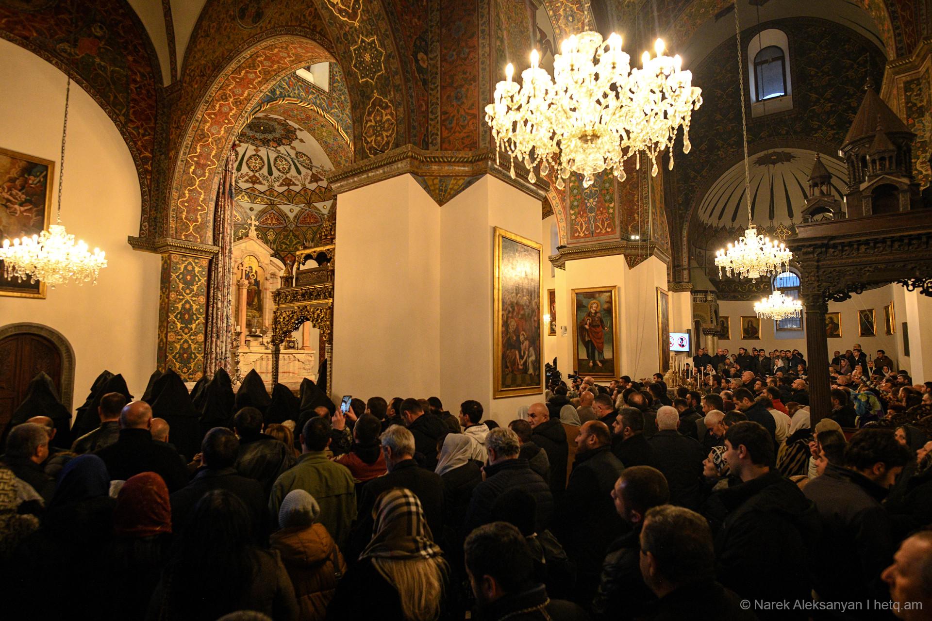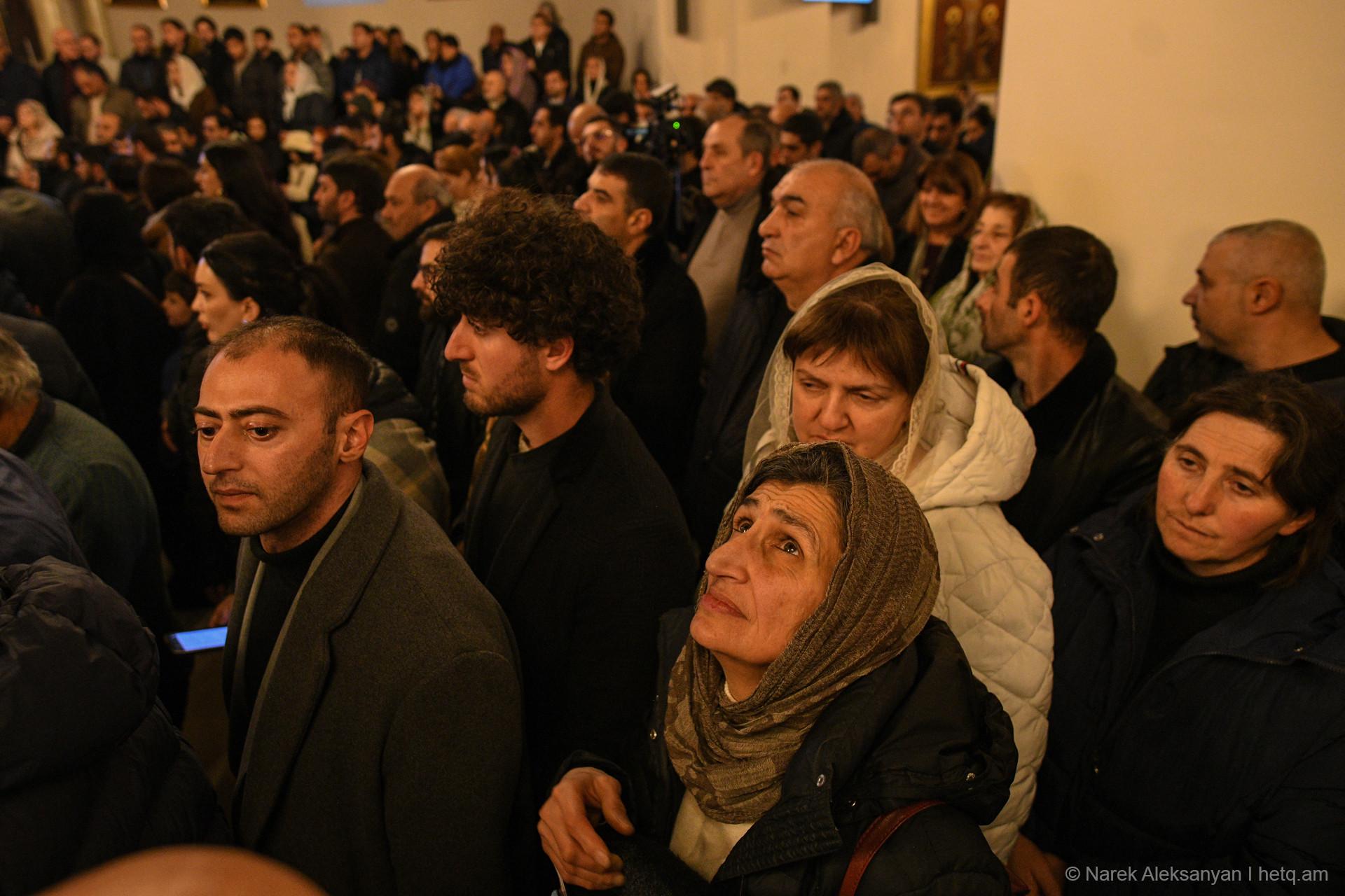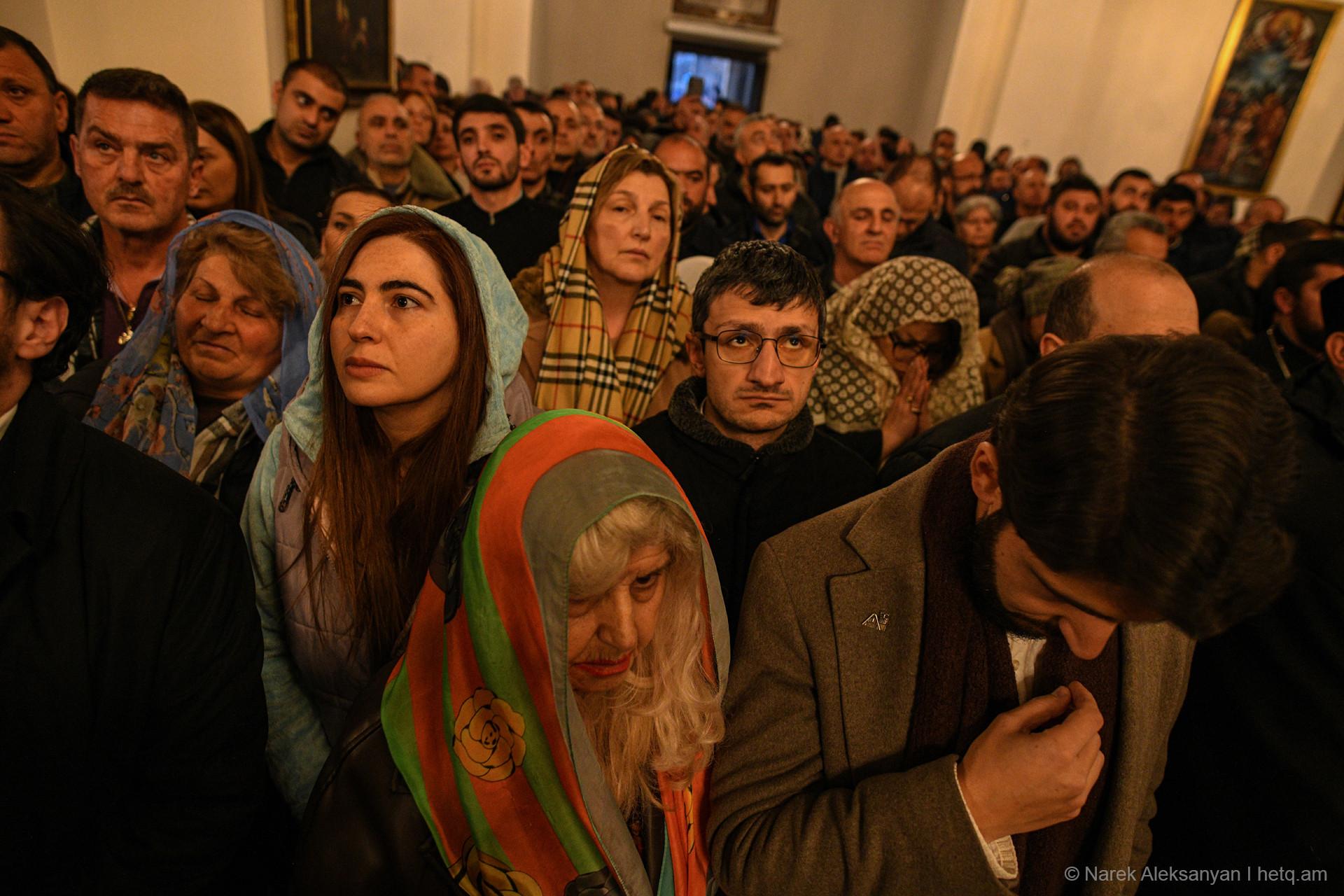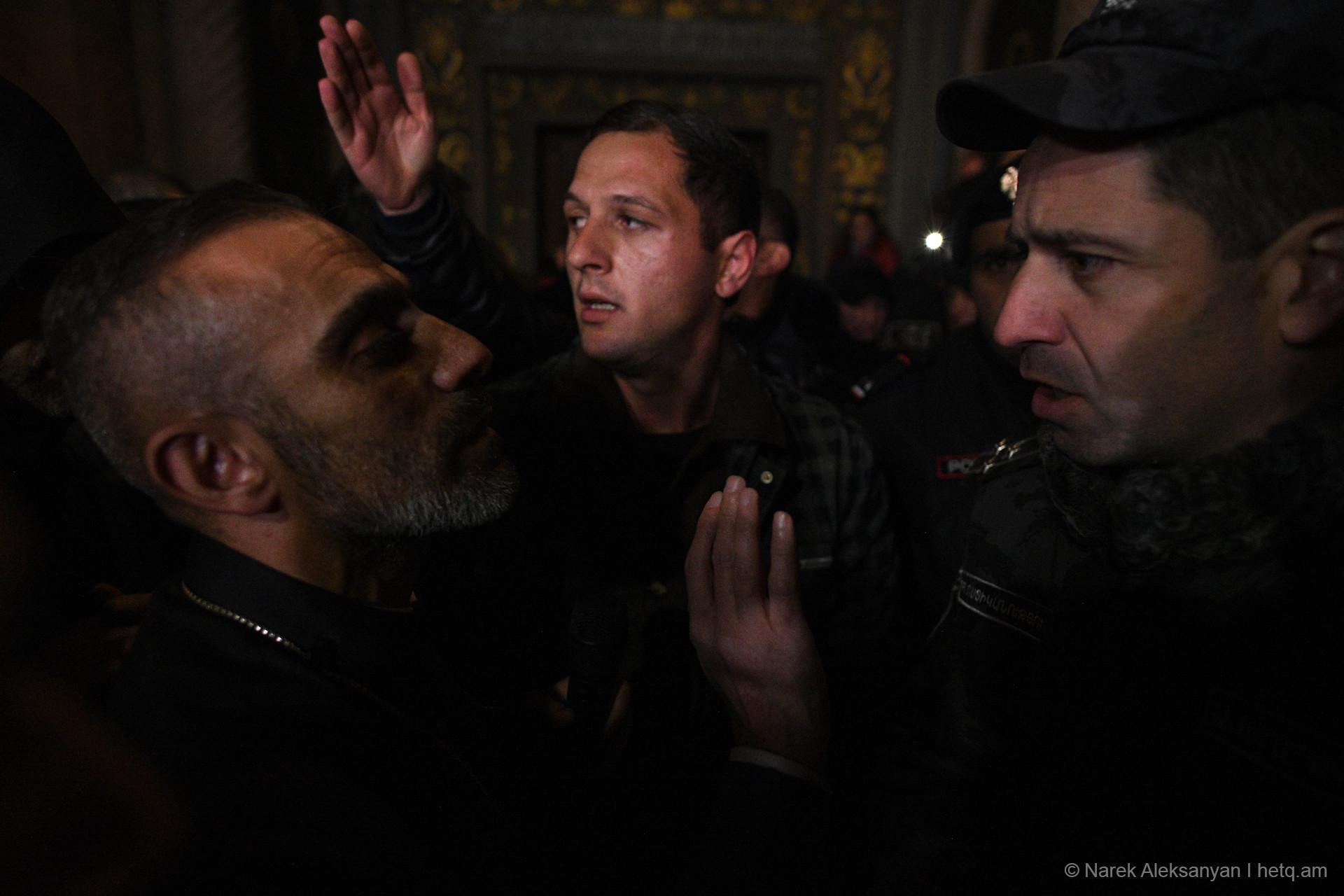 Եկեղեցու բակում հավաքվել էր Վեհափառին աջակցություն հայտնելու եկած ժողովուրդը, իսկ բակի մյուս թևում հավաքվել էին վերջինիս հեռանալը պահանջող քաղաքացիներ։ Նրանց բաժանում էր ոստիկանական պատնեշը։ Ժամերգությունը սկսեուց որոշ ժամանակ անց Վեհափառի հեռանալը վանկարկող քաղաքացիները փորձեցին ներխուժել եկեղեցու ներս, սկսվեց հրմշտոց։ Որոշ ժամանակ անց Կաթողիկոս Գարեգին Բ-ն դուրս եկավ եկեղեցուց և ուղևորվեց դեպի Վեհարան։