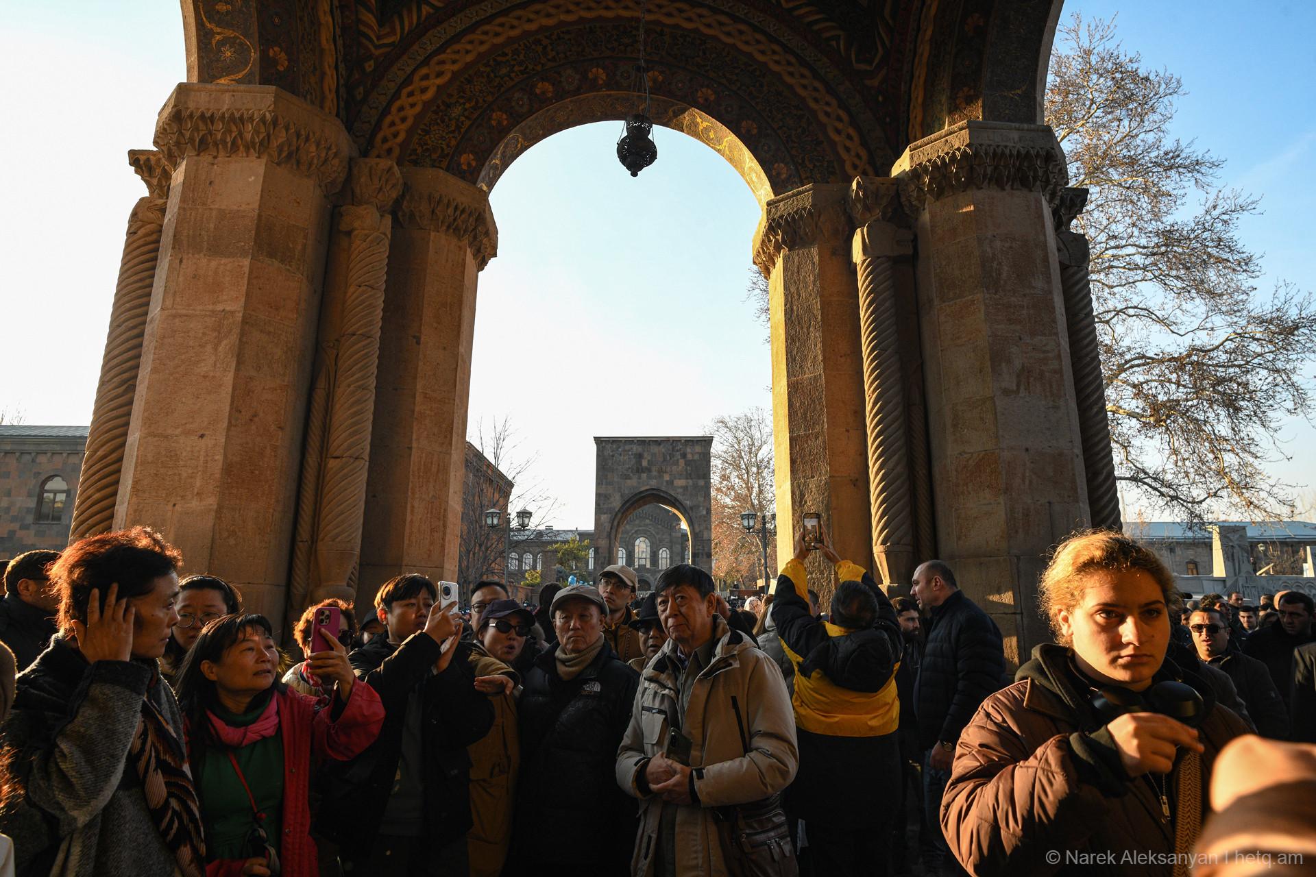 Հրմշտոց Մայր Աթոռի մուտքի մոտ (լուսանկարներ)