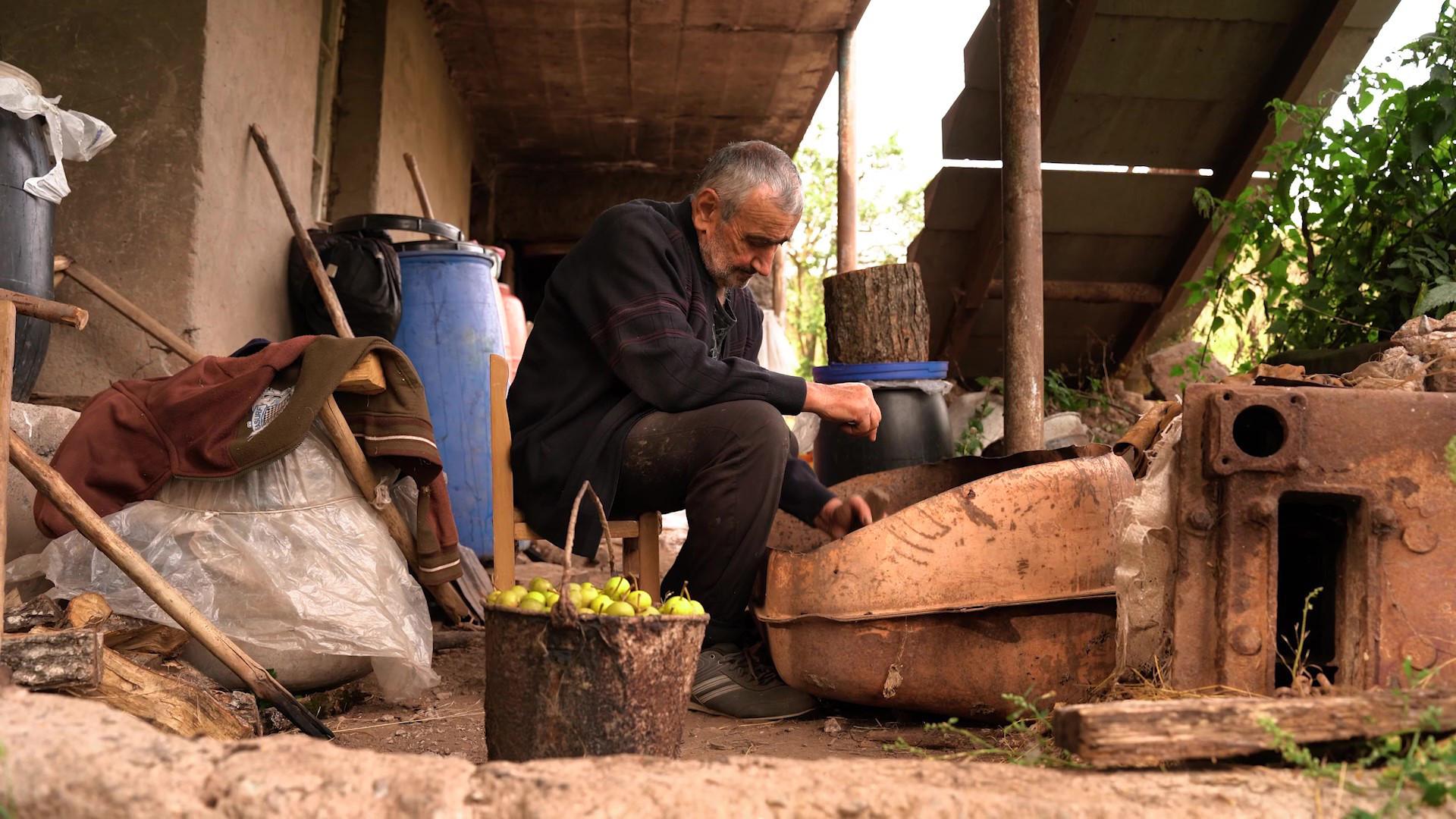 Բաղիշի զավակները վաղուց հեռացել են գյուղից, գնացել քաղաքներ։ Ինքն էլ ձմեռները նրանց մոտ է անցկացնում, իսկ ամառներն ու հատկապես աշնանը հավաքում է տնամերձ հողամասում թափված վայրի տանձն ու օղի պատրաստում։ «Ասում են՝ գործ չկա, բա սա գործ չի՞»։