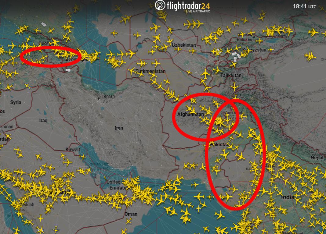 Եթե այս երկրների օդային տարածքը պաշտոնապես փակված չէ քաղաքացիական թռիչքների համար, եւ ավիաընկերությունները դրանց վրայով չվերթերի իրականացումը գնահատում են անվտանգ, ապա, կախված չվերթի ուղղությունից եւ ավիացիոն հաշվարկներից, Թուրքիա-Հայաստան-Ադրբեջան կամ Աֆղանստան-Պակիստան-Հնդկաստան եւ հակառակ երթուղիներով տարանցիկ թռիչքներ կատարելը (տես ստորեւ) միանգամայն նորմալ է, ավելին՝ շահավետ: