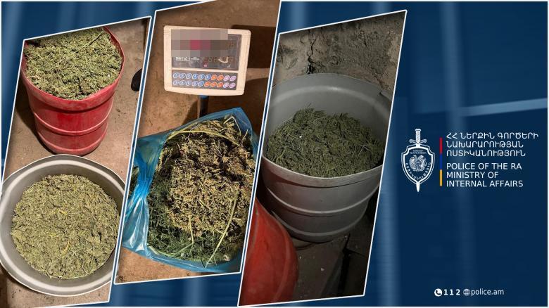 Զննությամբ նրա բնակության վայրում հայտնաբերվեց ավելի քան 12 կիլոգրամ կանեփանման զանգված․ գոմում՝ մոտ 5 կգ 900 գ չորացված, իսկ նկուղում և խորդանոցում՝ մոտ 6 կգ 300 գ չորացված ու մանրացված զանգվածներ։