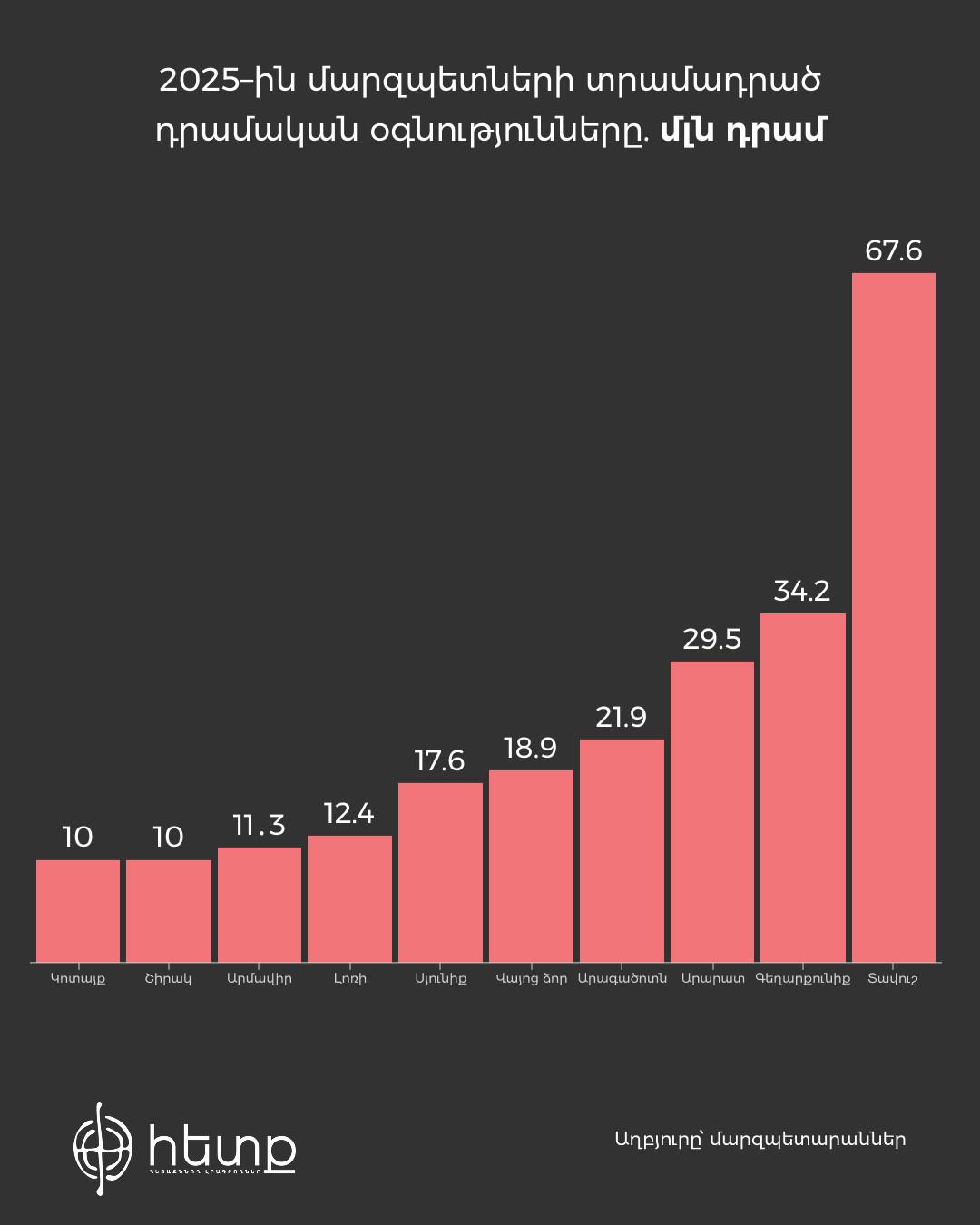 2025թ․ մարզպետների տրամադրած դրամական օգնություններն ըստ մարզպետարանների պաշտոնական կայքերի
