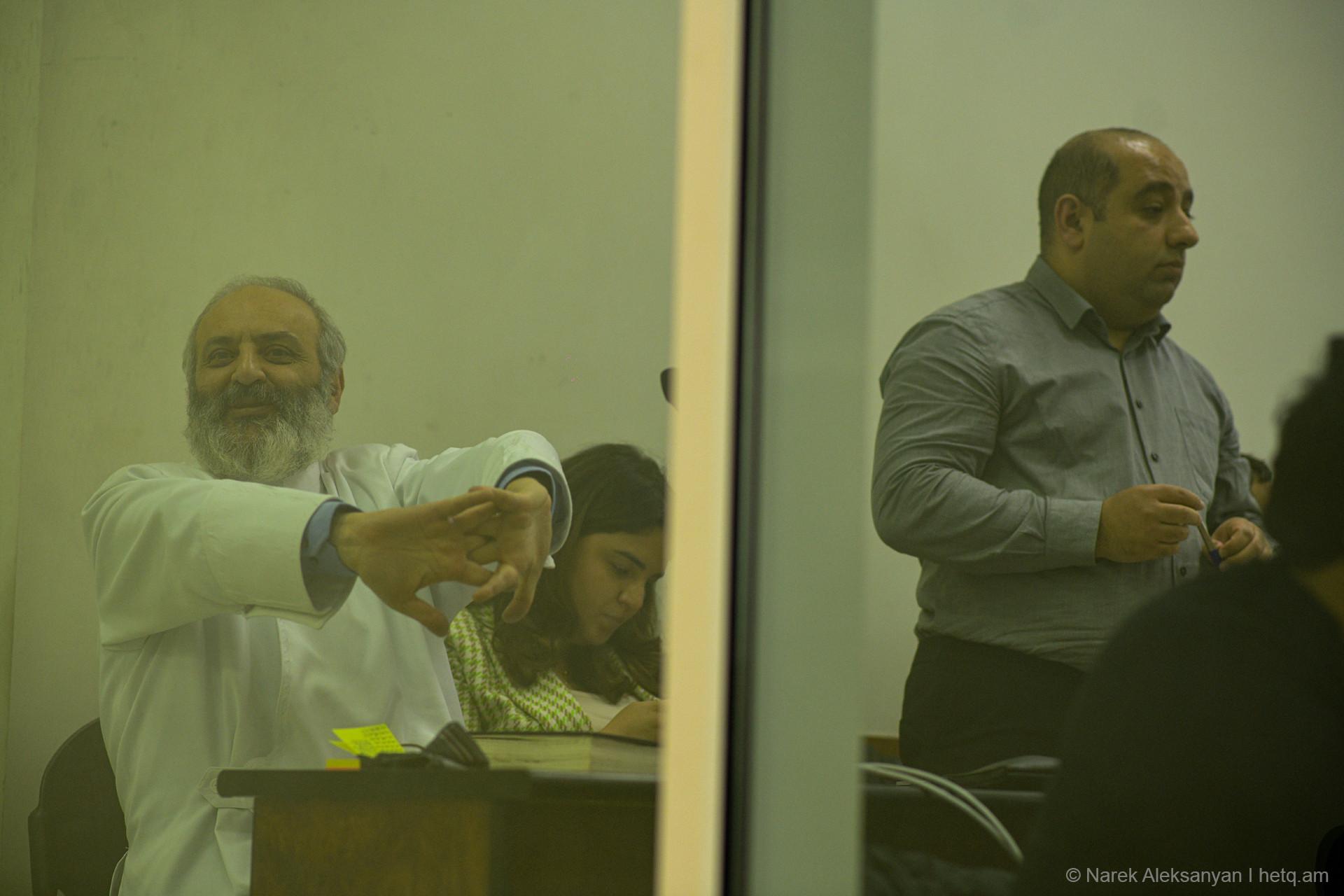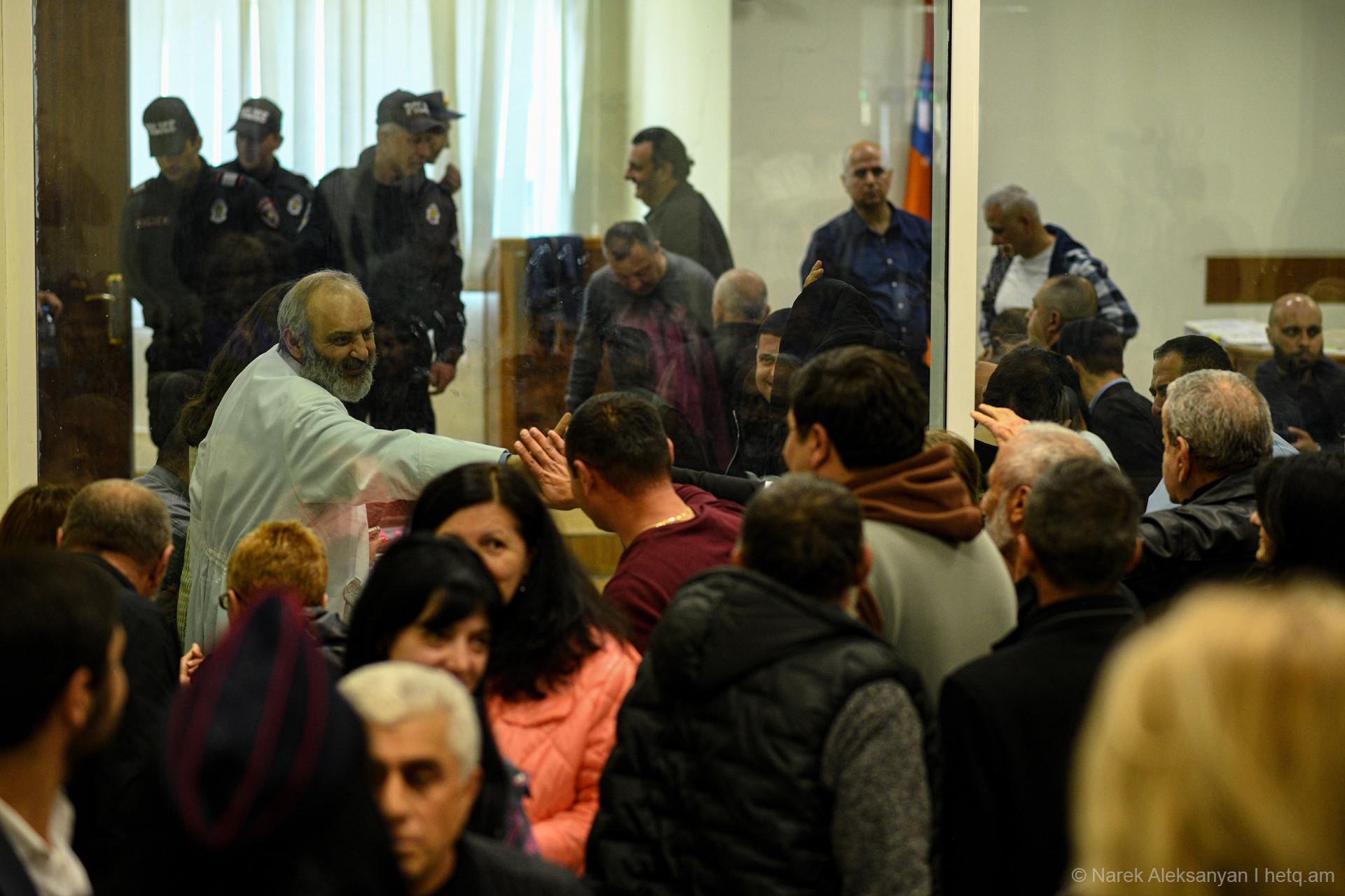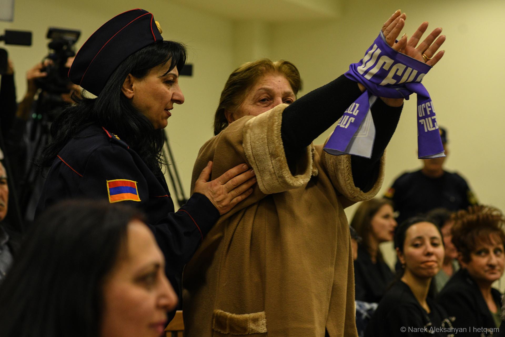 «Սրբազան պայքար»-ի աջակիցները, որոնք դահլիճում էին, փակել էին իրենց ականջները՝ ի նշան, որ հարաժարվում են նույն մեղադրանքը 18 անգամ լսելուց։