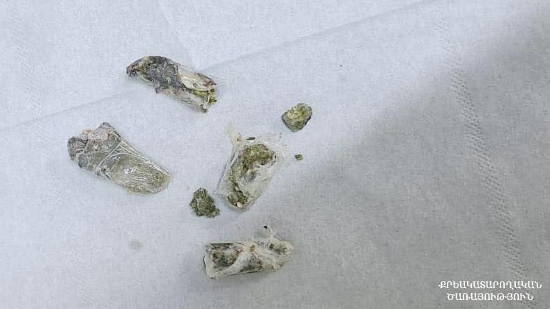 Քրեակատարողական ծառայության հաղորդմամբ՝ դատապարտյալի անվամբ քաղաքացու կողմից բերված հանձնուքում՝ եփված մսի ոսկորների միջից, հայտնաբերել են 7 փաթեթ՝ ընդհանուր 8.83 գրամ քաշով, մարիխուանային նմանվող բուսական զանգվածով: