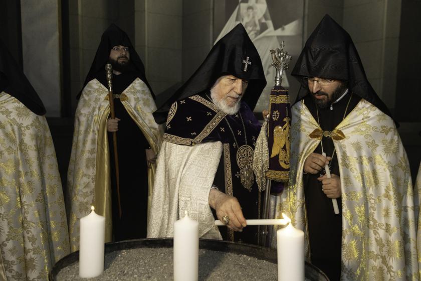 Սուրբ Պատարագի ավարտին Ամենայն Հայոց Կաթողիկոսը բարձրացավ Սուրբ Խորան և Սուրբ Սեղանի կանթեղից վառեց Տեր Հիսուս Քրիստոսին խորհրդանշող կենսատու մոմը, որը բաշխվեց հավատացյալներին: