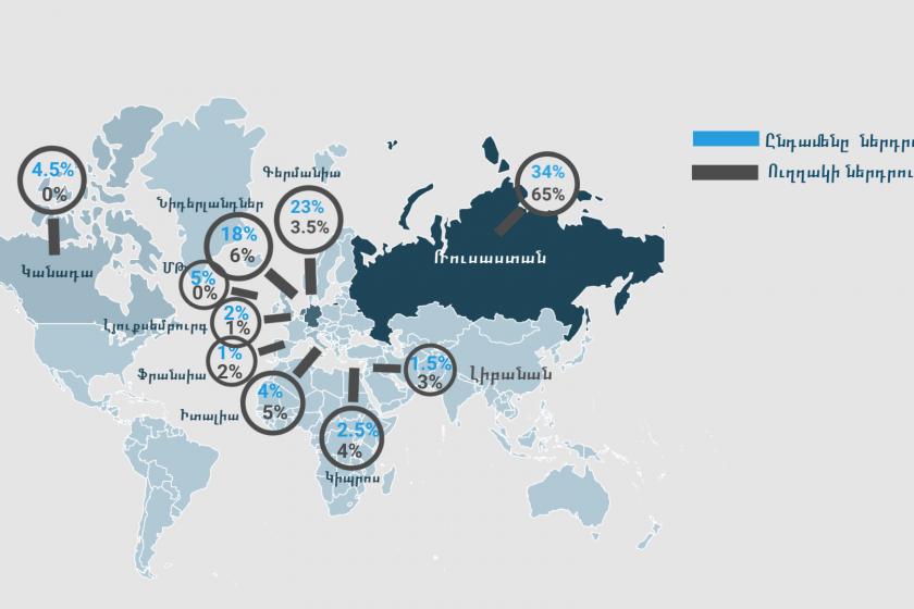 Պարզվում է՝ ընդհանուր ներդրումների 75%-ը կատարվել են միայն երեք երկրներից՝ Ռուսաստանից, Գերմանիայից ու Նիդերլանդներից։