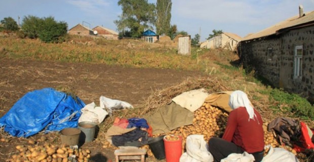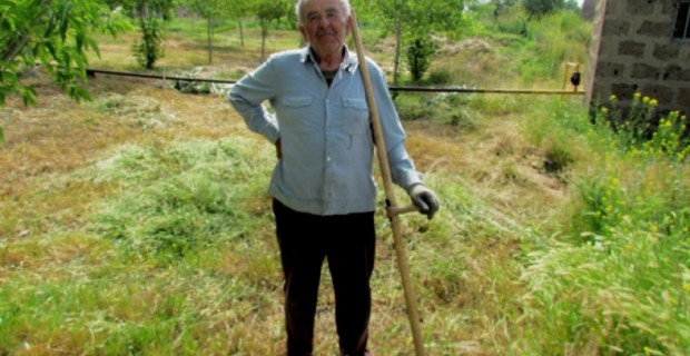 В Алашкерте утро, однако оживления на улицах села нет. Везде безлюдно, даже детских голосов не слышно. Лишь на центральной улице несколько мужчин играют в карты. Чуть дальше, во дворе детского сада 75-летний Гамлет Овсепян косит траву.