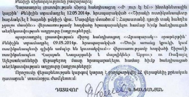 Несколько дней назад редактору информационного сайта ilur.am, директору ООО “Старт Медиа” Кристине Ханумян стало известно, что в Следственном комитете РА против нее возбуждено уголовное дело по ч.2 ст.353 УК РА (умышленное неисполнение должностным...